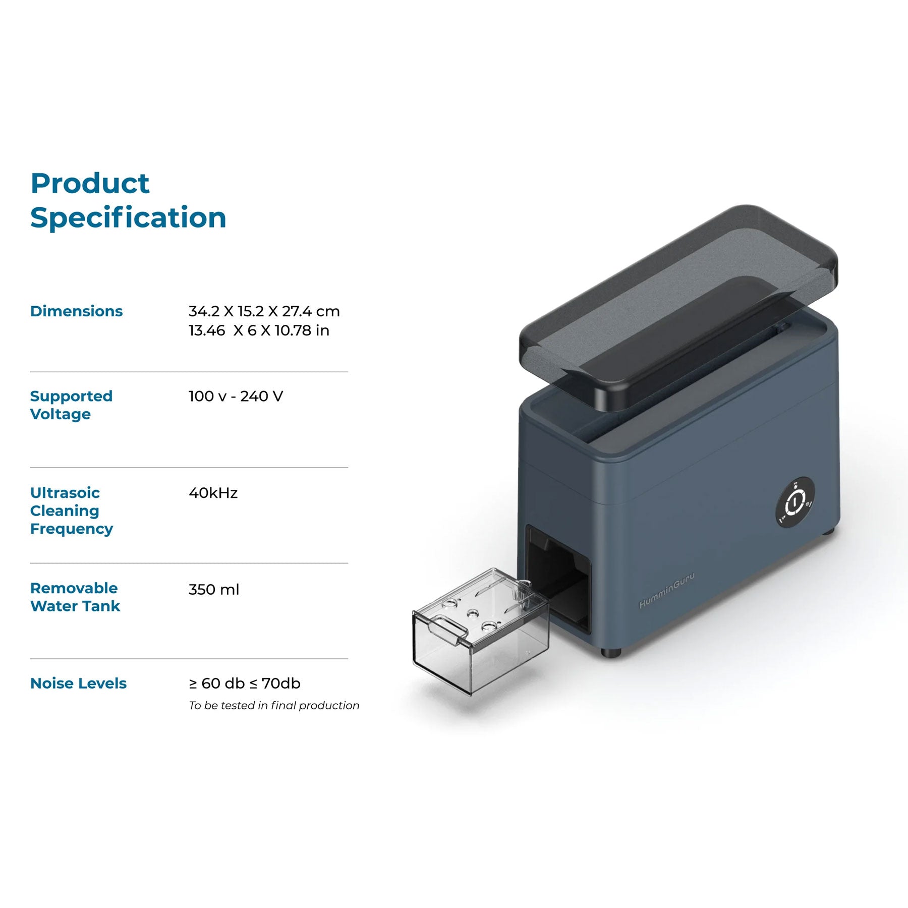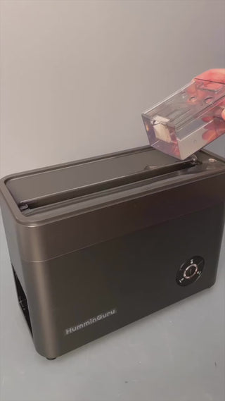 "A professional ultrasonic record cleaning machine not only brings your dirty records back to life, but is also a pleasant cleaning experience. Ultrasonic cleaning is an approved process of using sound waves to create cavitation bubbles in a liquid bath of water that requires zero contact with the record during the cleaning process. HumminGuru applies a duo 40 kHz ultrasonic system. With 40 kHz, it is powerful enough to remove the contaminants and dust on your vinyl record without causing any damage." - HumminGuru