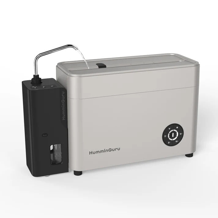 "This automated water dispenser designed exclusively for the HumminGuru Ultrasonic Vinyl Record Cleaners features three quick-select modes: a 350ml preset for 10"/12" records, a 400ml preset for 7" records, and a manual control for adjusting water levels in special cases. Simply press a button to deliver the precise amount of water needed for your records. A small but brilliant upgrade for a happier record cleaning experience!" - HumminGuru