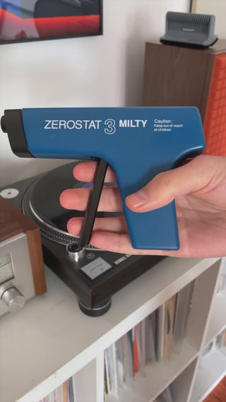 Instructions: point the Zerostat approximately 2-6 inches from your record, pull trigger, then slowly release the trigger. Follow up with using an anti-static record brush (we recommend our Triple Operation Brush). Repeat if necessary.