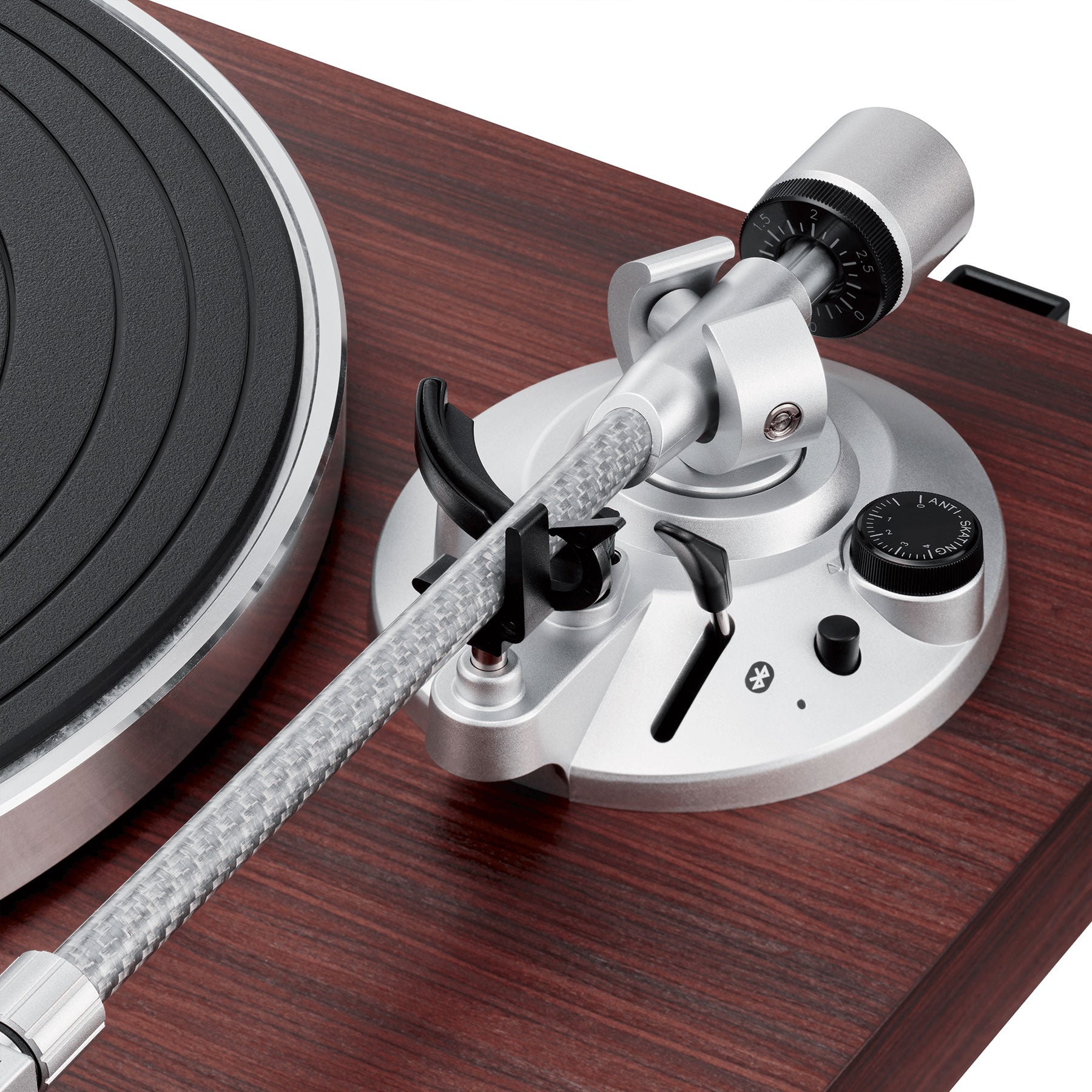 - 2-speeds: 33 1/3 / 45 RPM; sensor-monitored motor ensures accurate platter rotation speeds of 33 and 45 RPM