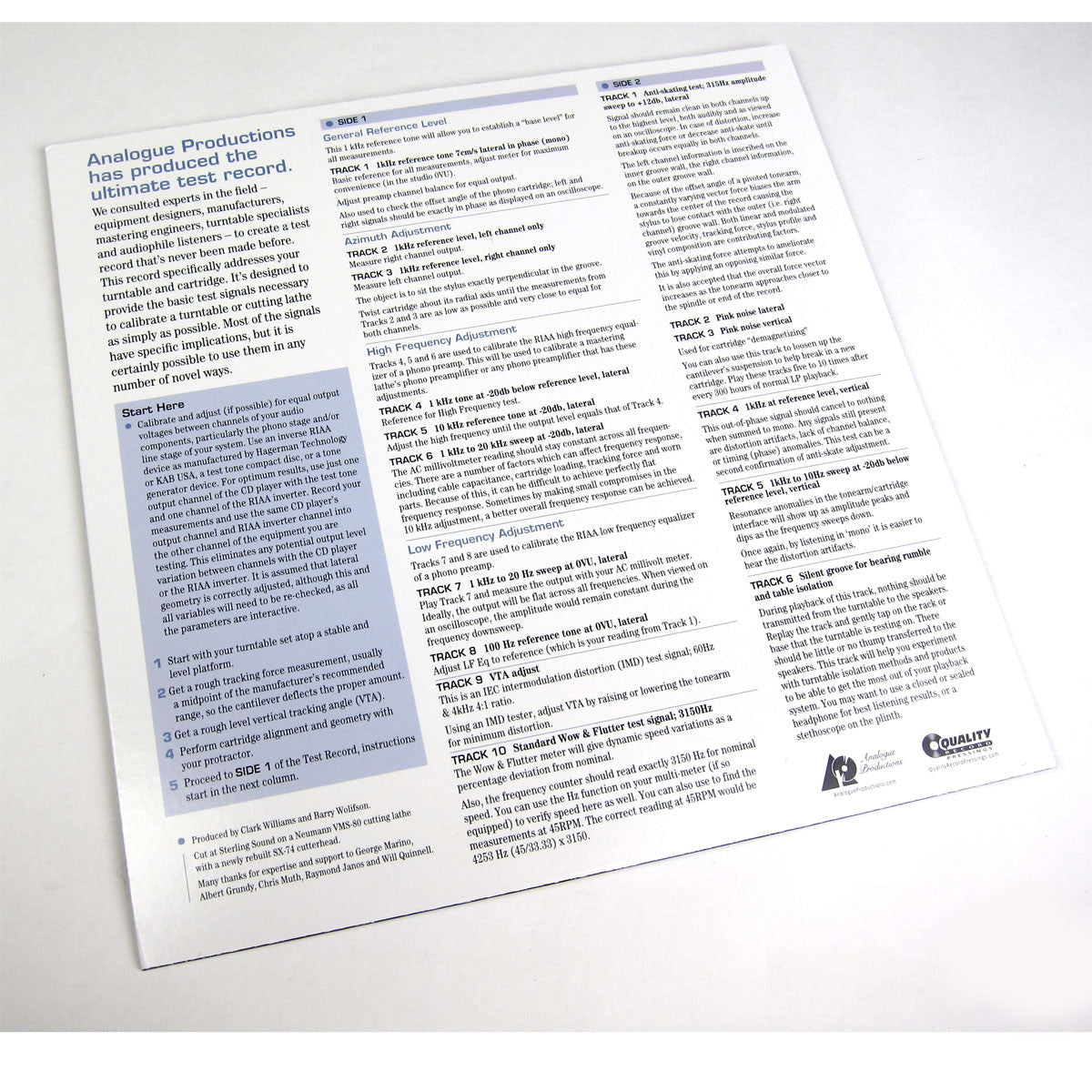Get the most out of your turntable set up with this Analogue Productions' Ultimate Analogue Test LP. This super useful test record features two sides of tools designed to help you dial in the optimal settings on your turntable for the best possible sound. This handy record provides the basic test signals to calibrate and adjust your settings as simply as possible. Test, adjust, and set azimuth, high frequency, low frequency, wow & flutter, anti-skating, rumble & isolation, and much more. A must for audiophile setups and anyone wanting to get the most out of their turntable. Recommended.