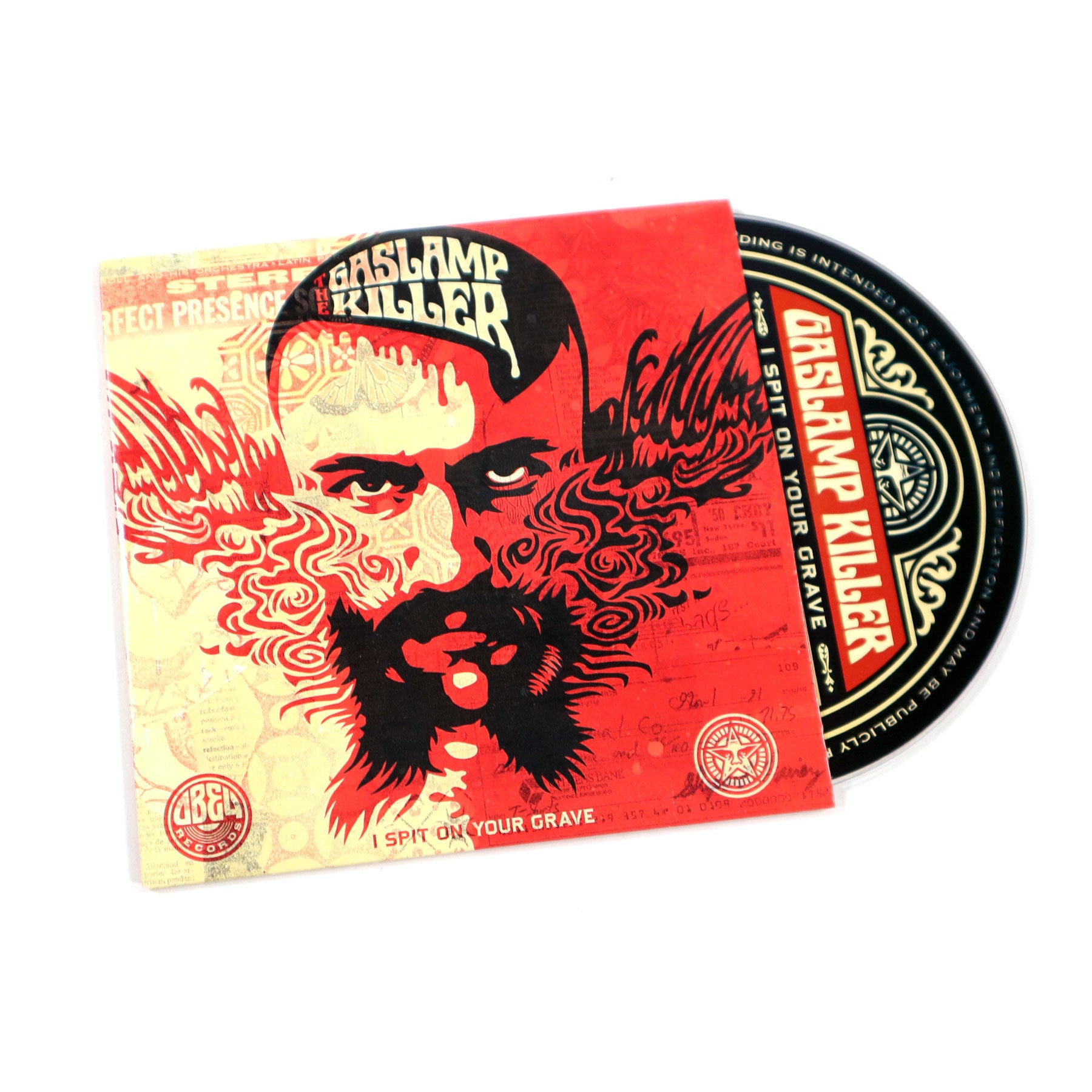 • Finally, the highly anticipicated mix from the Lab's dirty beat digger Gaslamp Killer! This is his third official mix and I'll have to say, it's a mind ringer. You should know his style by now - dark, swampy funk, with murderous drums and sounds from beyond. Heavy beat brother Kutmah also jumps in on the action, for a straight hour of neck breaking evil breaks. If you're into that late 90's deep funk, eerie Mowax cuts, and spaced out instrumentals, look no further. Tracklist? Sorry, the Killer's M.O. is always a barrage attack, leaving no clues at the scene (I can only name the Flying Lotus and DJ Vadim's Motion Man "Terrorist" instrumental). Definitely something to enjoy while blasted on good headphones. Also, the sick artwork by Shepard Fairey makes GLK look as twisted as ever. Super recommended for the true beat fiend.
