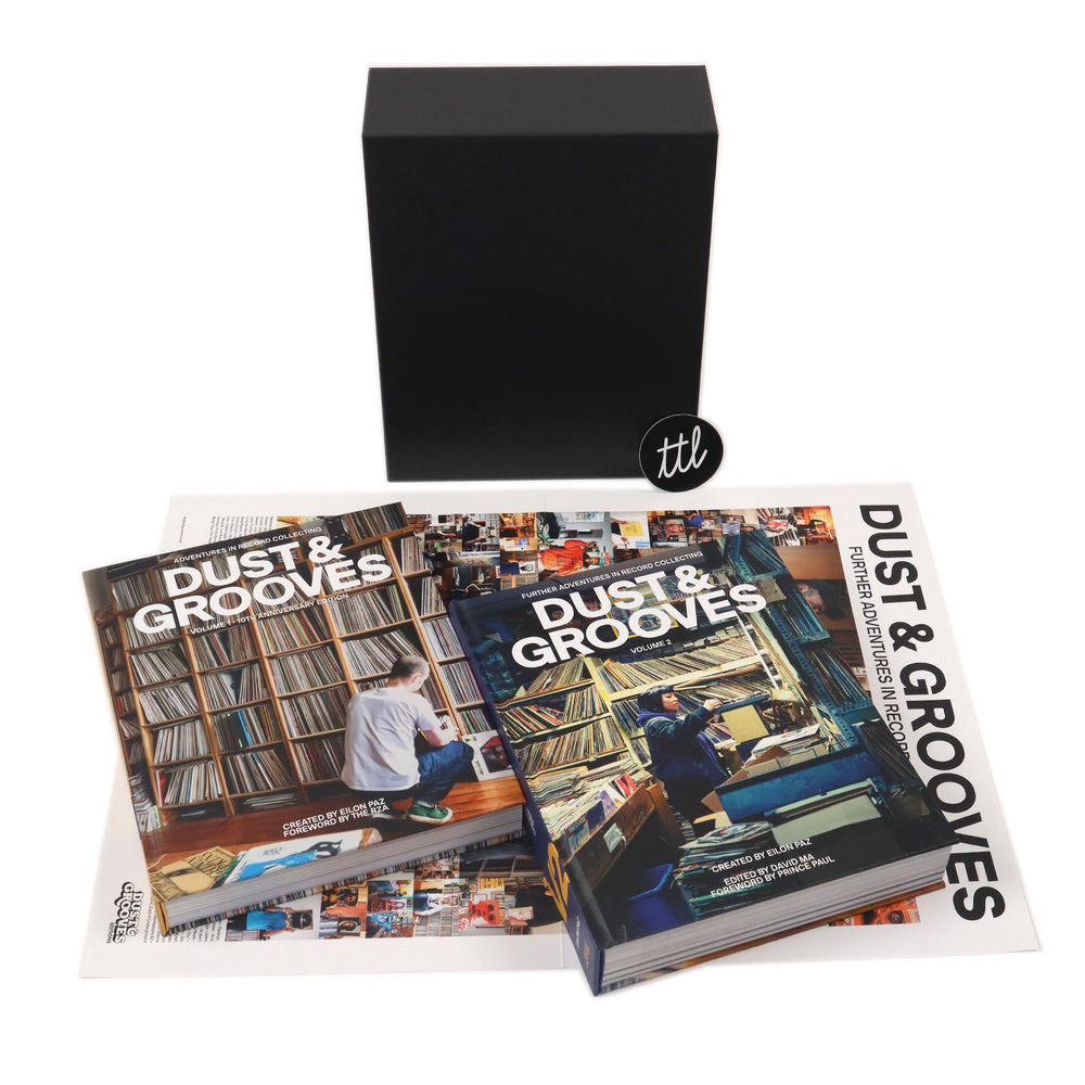 • Both volumes of the popular book from Dust & Grooves founder and photographer Eilon Paz. Dust & Grooves started out as a photo blog documenting record collectors in their homes and more importantly, their record rooms. Paz being a collector himself and having the ability to get the most intimate shots, his eye is keen for what makes each person happy, whether it be the rarest of the rare or a dollar bin record. The resulting book, Dust & Grooves - Adventures in Record Collecting, chronicles his travels from around the globe featuring interviews with DJs, producers, record dealers, and everyday enthusiasts. 10 years later, Eilon returned with Volume 2, a peek into the collections of a whole new crop of record enthusiasts. This limited edition deluxe set contains both books, total over 1000 full color pages featuring more than 270 of the world’s greatest vinyl collectors, including QuestloveA-Trak, Gilles Peterson, DāM-FunK, Floating Points, Four Tet, Peanut Butter Wolf, Quantic, DJ Spinna, Kid Koala, Rich Medina, King Britt, Andy Votel, Colleen Murphy, Mayer Hawthorne, The Gaslamp Killer and bass maestro Ron Carter. Both books are housed in a thick outer slipcase. Also includes a foldout poster. Recommended.