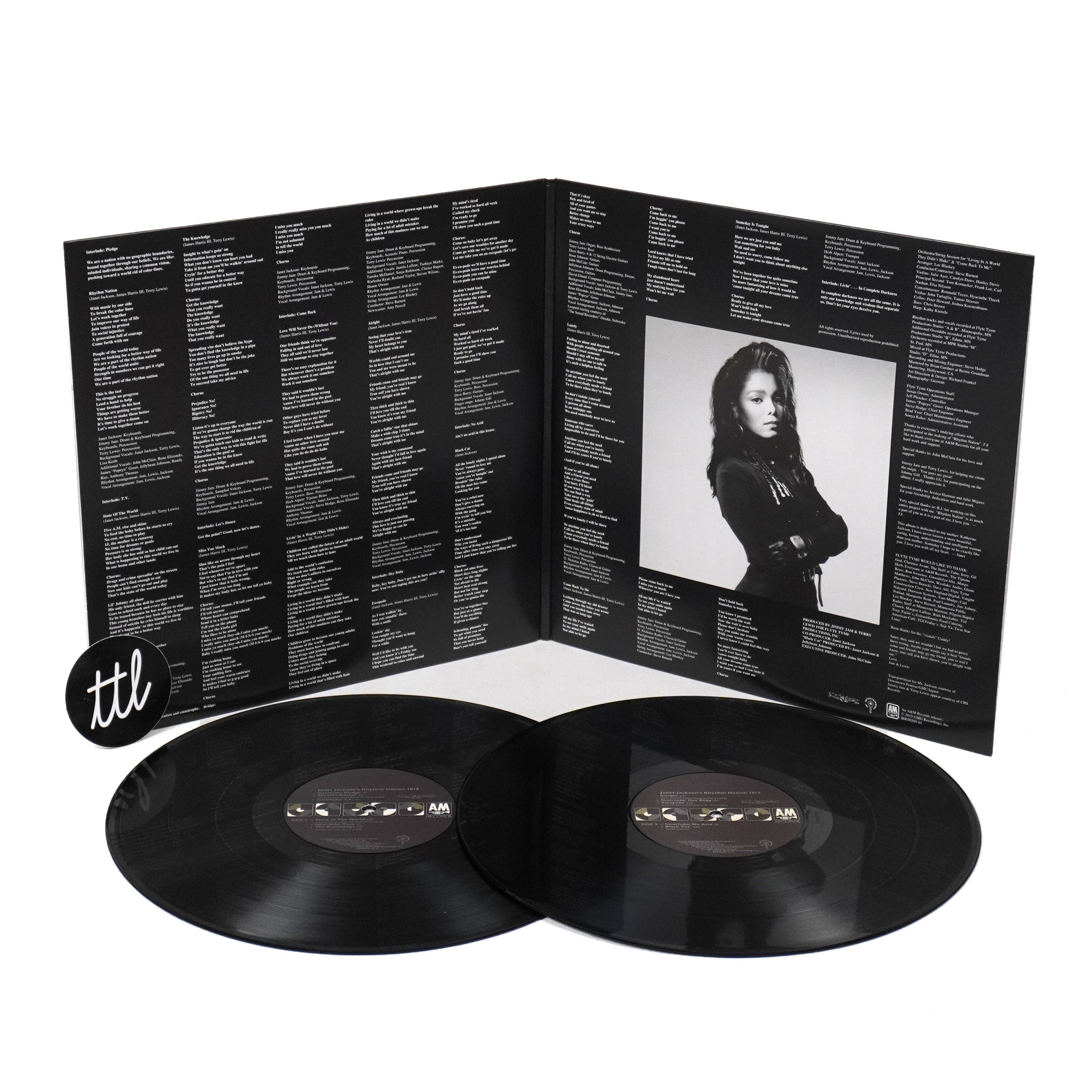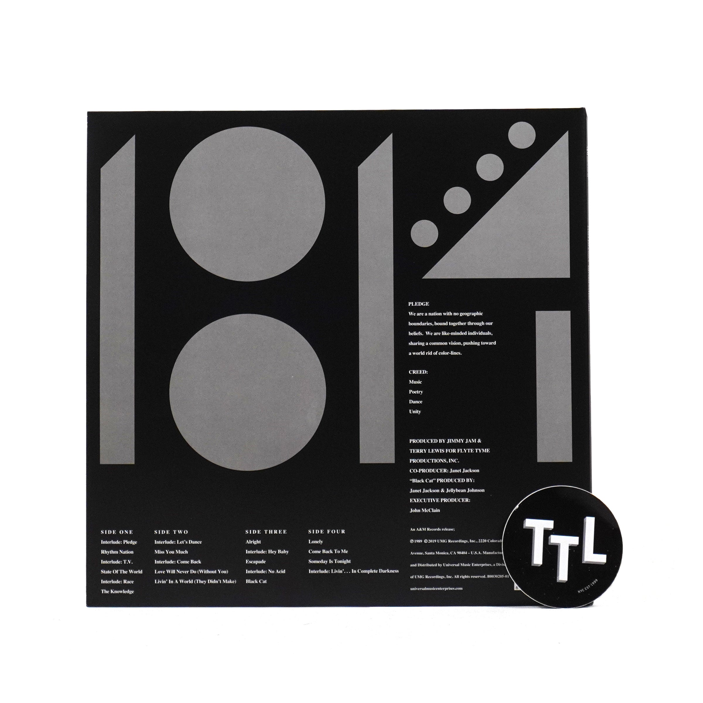 "Double vinyl LP pressing. Thirtieth Anniversary edition that restores the album's previously missing interludes and unedited tracks. Janet Jackson's Rhythm Nation 1814 is the fourth studio album by Janet Jackson, originally released on September 19, 1989. Although label executives wanted material similar to her previous album, Control (1986), Jackson insisted on creating a concept album addressing social issues. Collaborating with songwriters and record producers Jimmy Jam and Terry Lewis, she drew inspiration from various tragedies reported through news media, exploring racism, poverty, and substance abuse, in addition to themes of romance. Although it's primary concept was met with mixed reactions, its composition received critical acclaim. Jackson came to be considered a role model for youth because of her socially conscious lyrics." - A&M