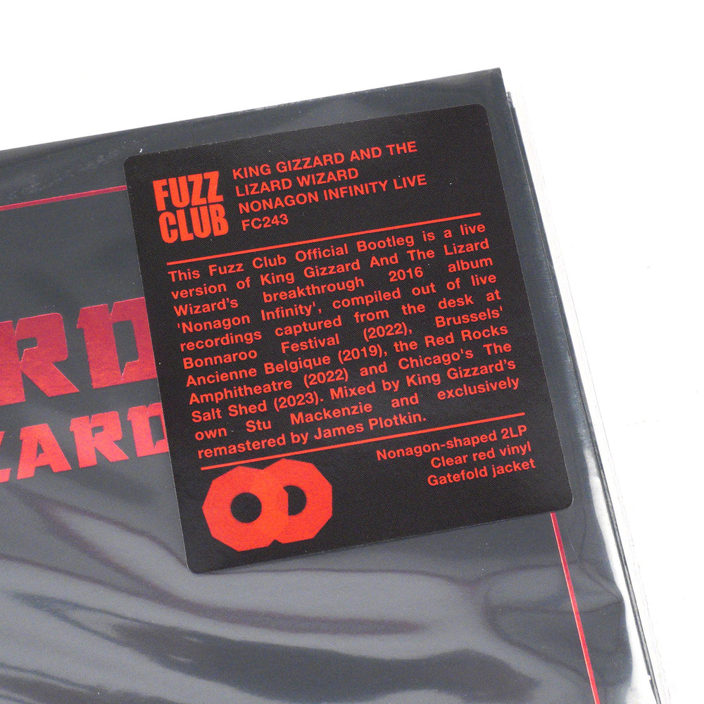 "Second pressing of Fuzz Club's King Gizzard & The Lizard Wizard 'Nonagon Infinity Live' bootleg. A live version of the cult Australian psych-rock band's breakthrough 2016 album 'Nonagon Infinity' compiled by Fuzz Club (with the help of the r/KGATLW Reddit community) out of live recordings captured at Bonnaroo Festival (2022), Brussels' Ancienne Belgique (2019), the Red Rocks Amphitheatre (2022) and Chicago's The Salt Shed (2023)." - Fuzz Club