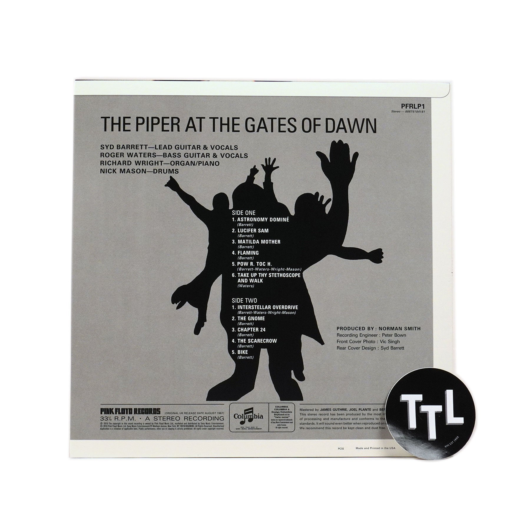 "Limited 180 gram vinyl LP pressing of this classic album from British rock legends Pink Floyd. The original vinyl packaging has been lovingly replicated with special care. The Piper At The Gates Of Dawn is one of the seminal psychedelic rock albums of the 1960s. The band's debut album, features the band's original lineup: Syd Barrett, Roger Waters, Richard Wright, and Nick Mason. Includes the classic songs 'Astronomy Domine', 'Lucifer Sam' and 'Interstellar Overdrive'. The album, named after the title of chapter seven of Kenneth Grahame's The Wind in the Willows and featuring a kaleidoscopic cover photo of the band taken by Vic Singh, was recorded from February to May 1967 and released on 5 August 1967. It was produced by Beatles engineer Norman Smith and released in 1967." - Columbia