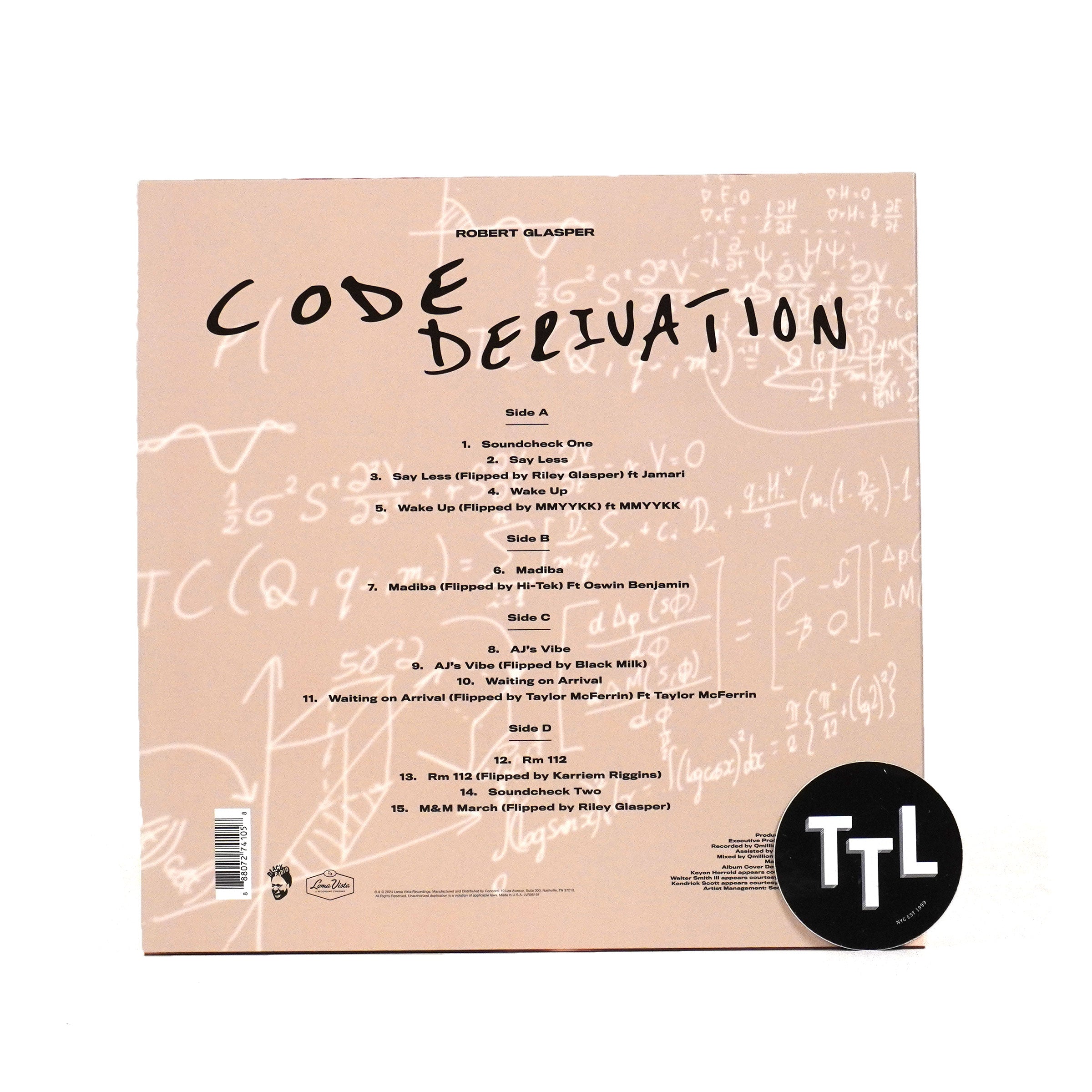 "Robert Glasper’s GRAMMY-nominated album, Code Derivation, is now available for the first time on vinyl. This unique project gives listeners two radically different versions of the same track – one played live in-studio performed by Glasper and his band and a version 'flipped' by a producer of his choosing." - Loma Vista