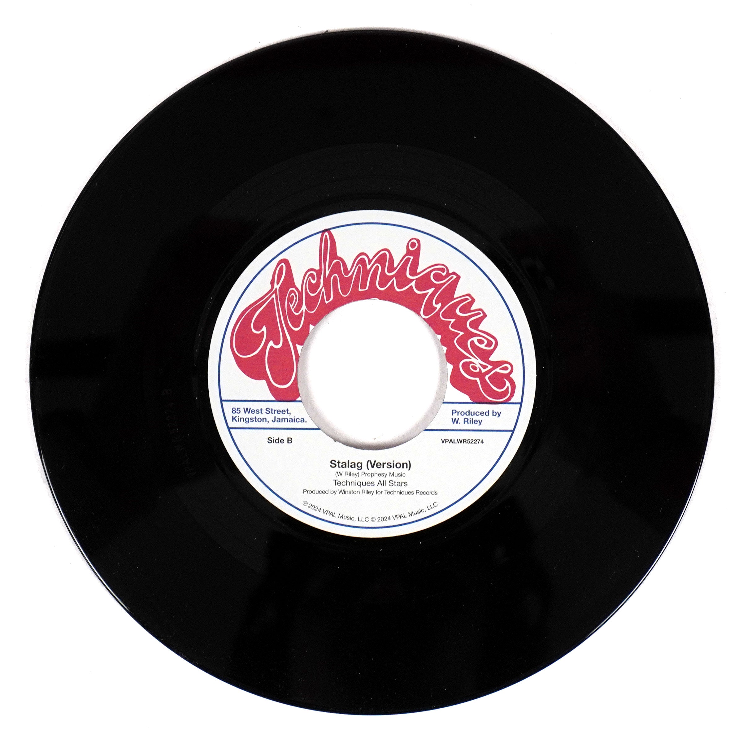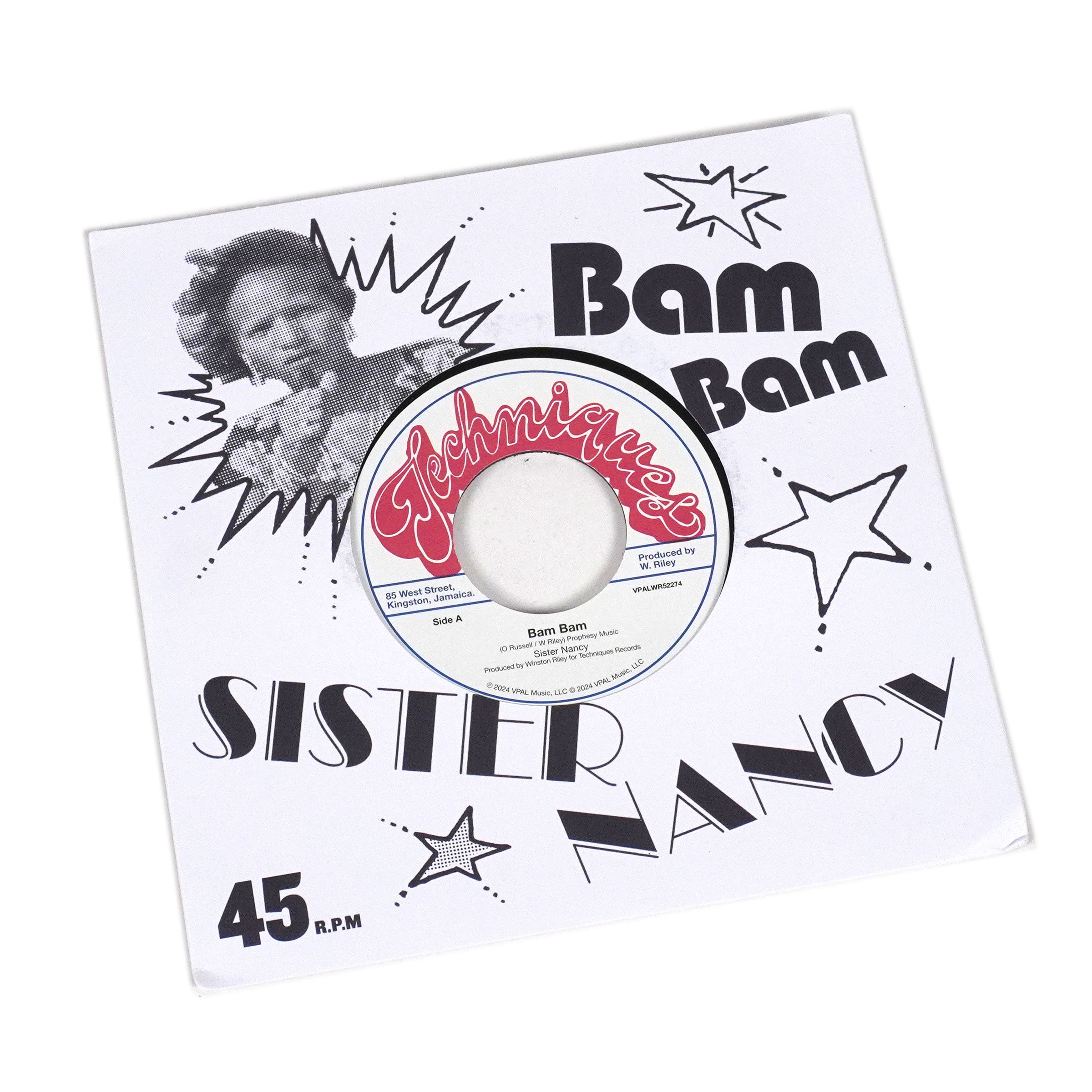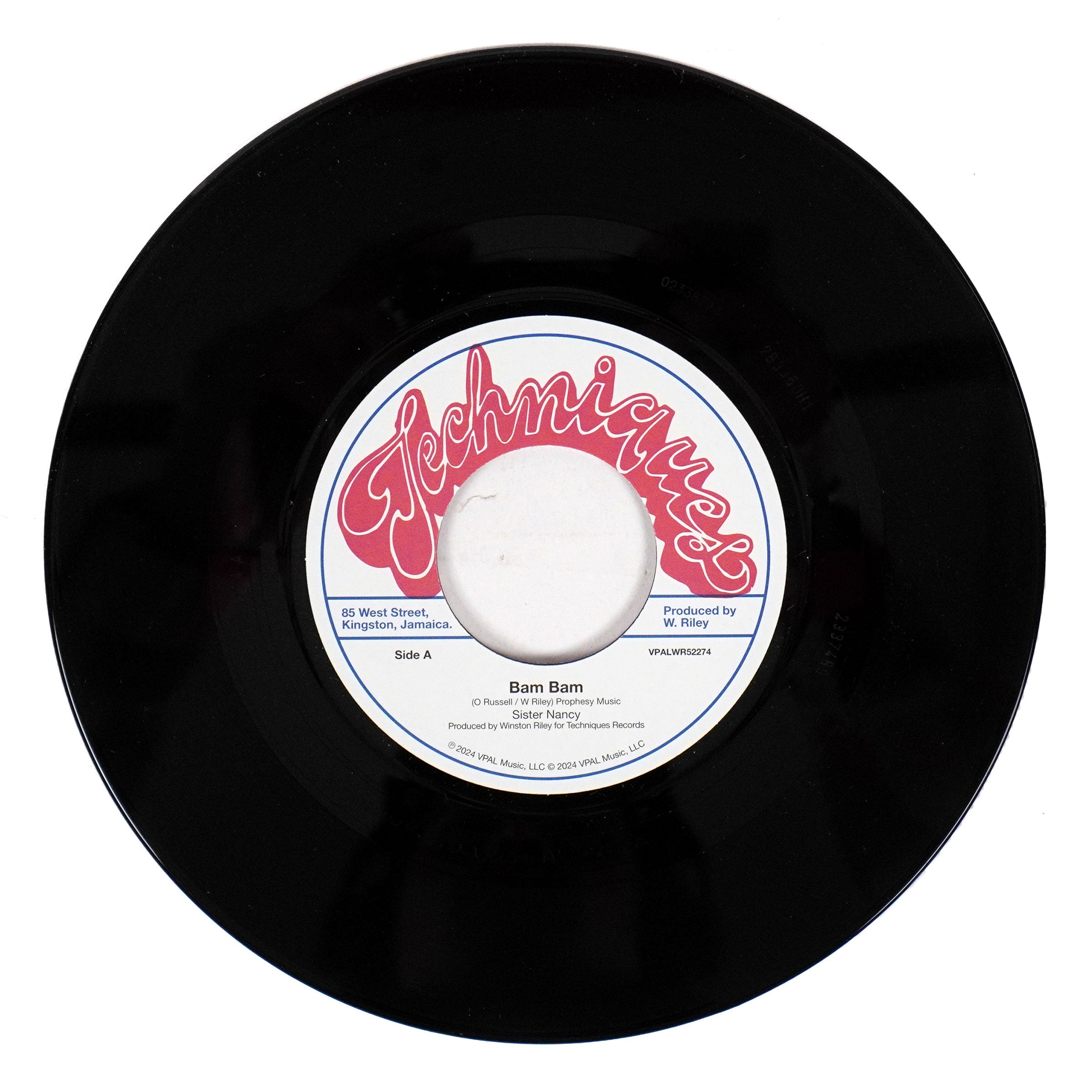 "'Bam Bam' is a 1982 song by Jamaican dancehall recording artist Sister Nancy. The song's chorus was inspired by the 1966 song of the same name, by The Maytals and Byron Lee and the Dragonaires. The song's instrumental samples the 1974 song 'Stalag 17', by Ansell Collins, a well-known riddim (alternatively known as a backing track used repeatedly). At last, back out on a 7” single and backed by the Crucial Dub version of the original Stalag 17 Instrumental. Limited press (Solid Gold Vinyl) in illustrated sleeve—Don’t Miss Out!" - Techniques