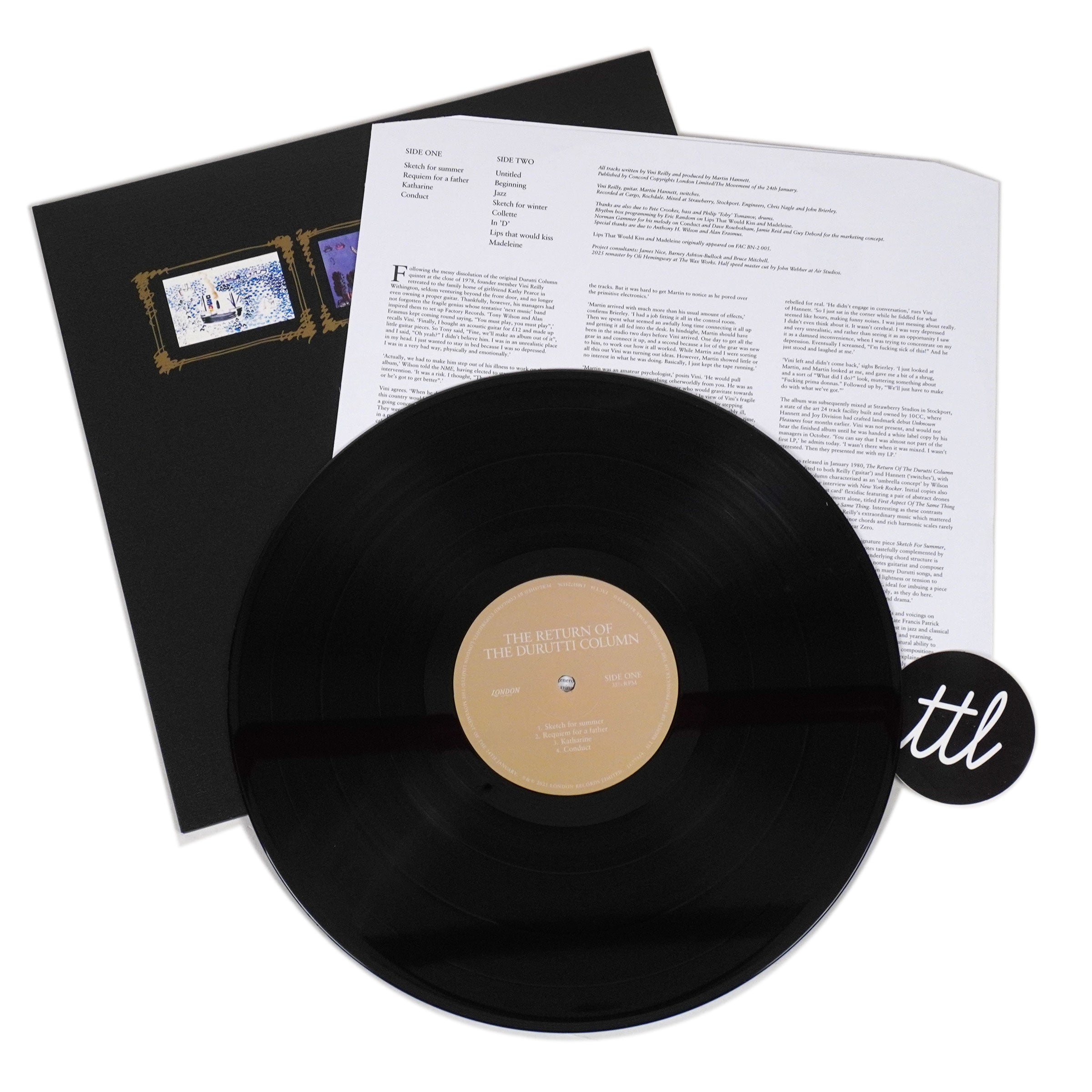 "Alongside Joy Division, The Durutti Column were amongst the first artists to be released by Factory Records. Their debut album, produced by Martin Hannett, showcased the filigree guitar work of Vini Reilly, awash with reverb and early experiments with synthesizers. It would be a first album of a five-decade career, in which The Durutti Column would quietly emerge as one of the most influential acts from the Manchester scene and beyond. To celebrate the album's 45th anniversary, London Records revisits the album with new editions, with audio sourced and remastered from the original tapes for the first time since 1980, with vinyl cut at half speed. LP version includes restored 'second edition' artwork with textured sleeve. Liner notes by The Durutti Column/Factory Records expert James Nice." - London Records