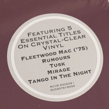 "Limited-edition 6LP boxed set featuring Fleetwood Mac’s iconic 1975 to 1987 studio albums, all pressed on crystal-clear vinyl. This collection includes Fleetwood Mac (S/T), Rumours, Tusk, Mirage and Tango In The Night." - Reprise Records