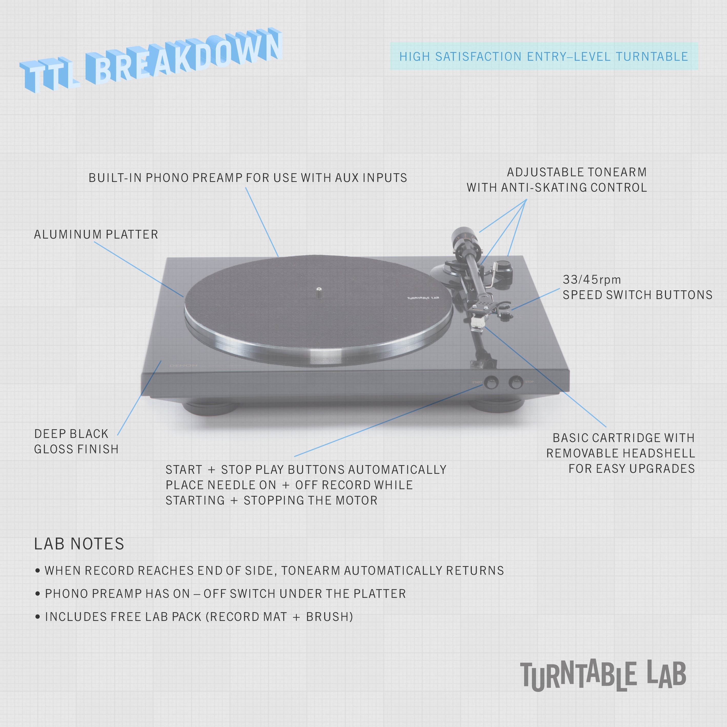 • built-in phono pre-amp - ready to plug into your audio system's AUX input