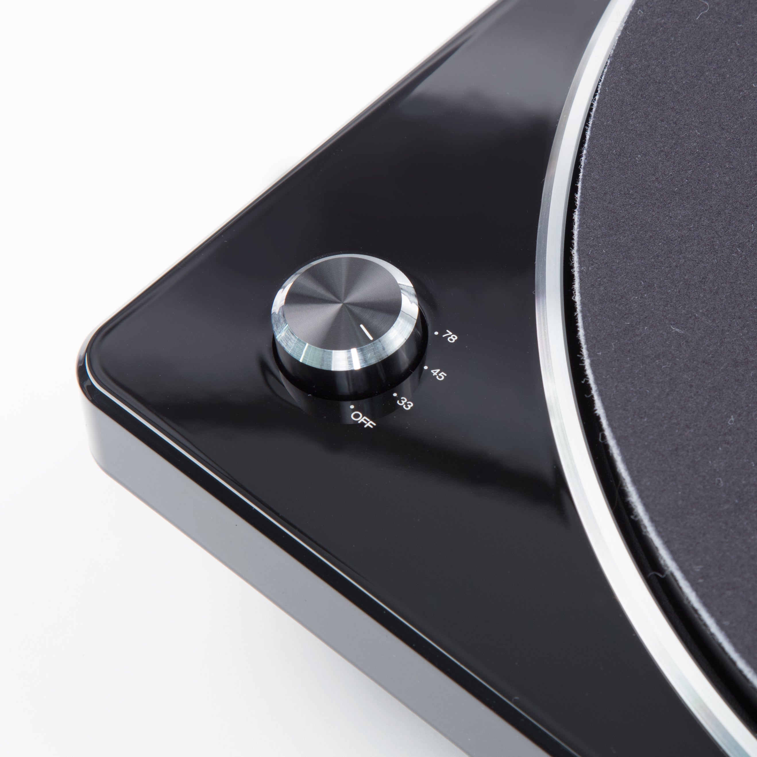 - (3) speed playback: 33 / 45 / 78 rpm, knob controlled