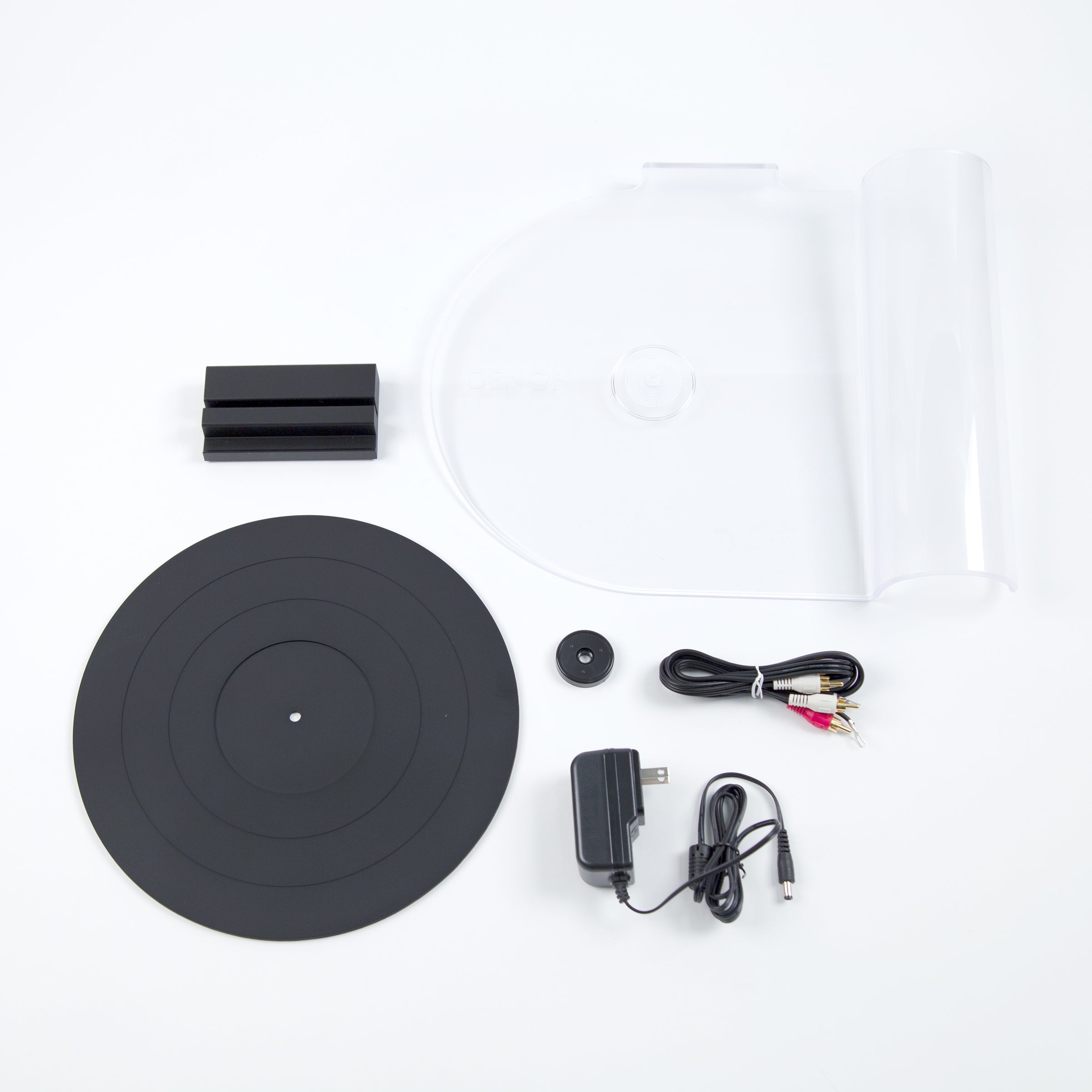 - unique dustcover design: un-hinged design includes a stand to store dustcover when turntable is in use; stand also functions as a "now spinning" album cover display stand