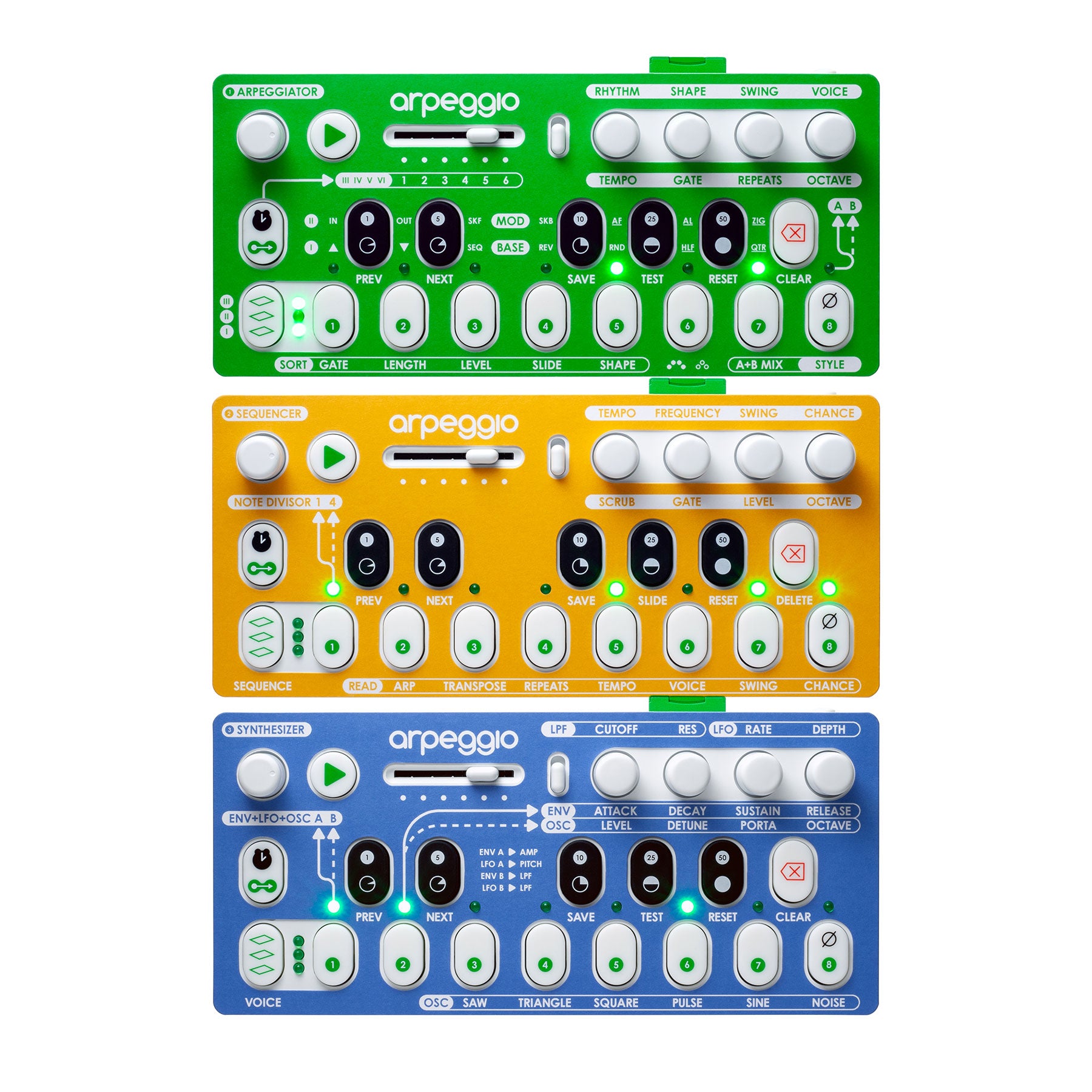 "Arpeggio lets you easily compose, save, and perform melodies. It's an arpeggiator, sequencer, and synthesizer in one portable instrument, designed to give you the freedom to make melodies with nuance and distinction. Save hundreds of melodies and create millions of arpeggiator styles. Control your gear wirelessly with MIDI over bluetooth or go old school with control voltage and gate." - Tangible Instruments