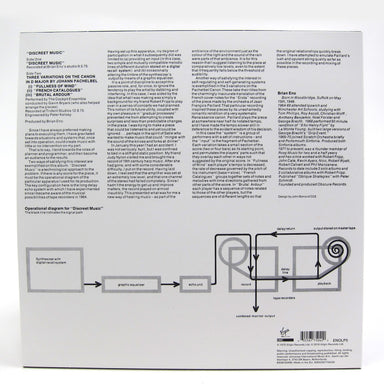Crucial Brian Eno work reissued. Discreet Music was originally released in 1975 and marked a significant stylistic shift toward ambient music. Compared to the more traditional rock aesthetic of his previous efforts (Here Come The Warm Jets, Taking Tiger Mountain, and Another Green World), here Eno utilized a minimalist set up of synthesizer and tape delay to create the striking title track that would influence many works to come. The B-side suite "Three Variations on the Canon in D Major" was actually performed by the Cockpit Ensemble lead by fellow Obscure label alum Gavin Bryars. This 2018 reissue features the 2004 remastered tracks and comes pressed on heavyweight 180 gram vinyl.