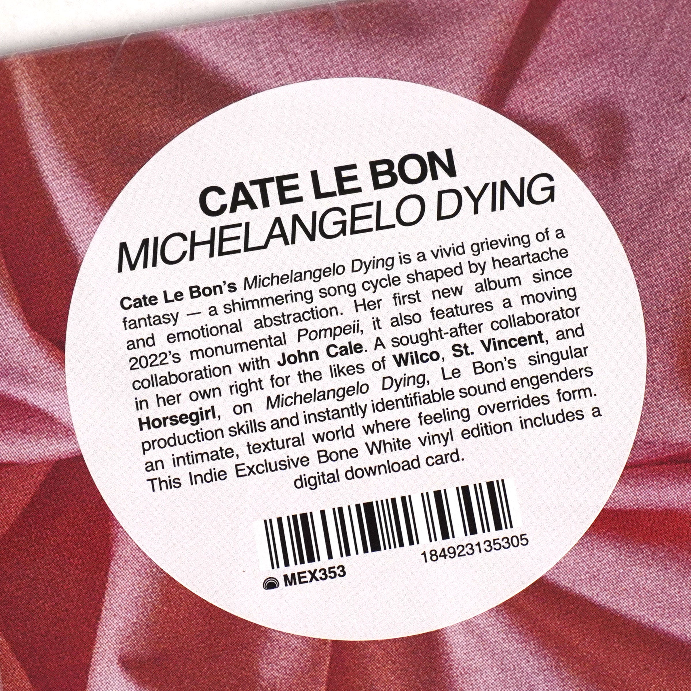 "It's creation led by pure emotion, Cate Le Bon's seventh record Michelangelo Dying usurped the album she thought she was making. The product of all-consuming heartache, her feelings overrode her reluctance to write an album about love, and in the process became a kind of exorcism. What emerges is a wonderfully iridescent attempt to photograph a wound before it closes up but which in doing so, picks at it too. Musically, there is a continuation and expansion of a sound a machine with a heart that has taken shape over her last two records (2019s Reward and 2022s Pompeii) as Le Bon has increasingly taken control of the playing and producing herself. As guitars and saxophones are pushed through pedals and percussion and voices are fed through filters, an iridescent, green and silky sound emerges, with flashes of the artistic singularities of David Bowie, Nico, John McGeoch and Laurie Anderson surfacing and disappearing below the waterline throughout. What were left with is an ever-changing, continuous entity, a kind of song cycle." - Mexican Summer