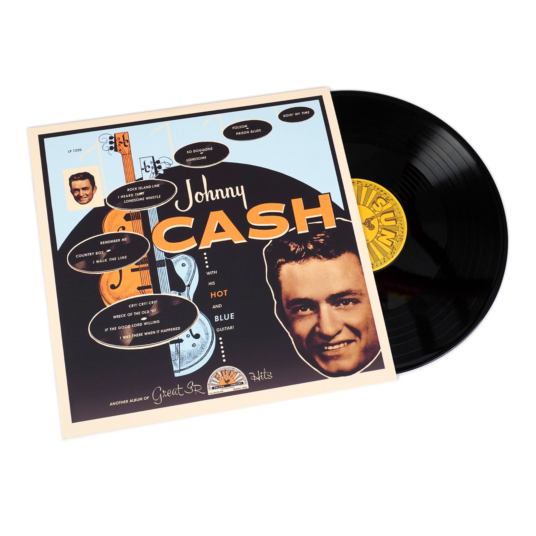 "Johnny Cash 'With His Hot and Blue Guitar' is the debut album from the Man in Black, featuring hits like 'I Walk The Line' and 'Folsom Prison Blues'. Released in 1957, it was the first LP ever issued on Sam Phillips’ Sun Records label. Pressed on black vinyl." - Org Music