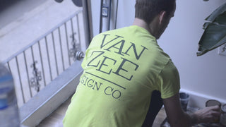 For this design, we pay homage to the independent stereo shops of the past. Hand-lettered design by Brooklyn's Van Zee Sign Co., who also hand-painted our old 10th street storefront windows.