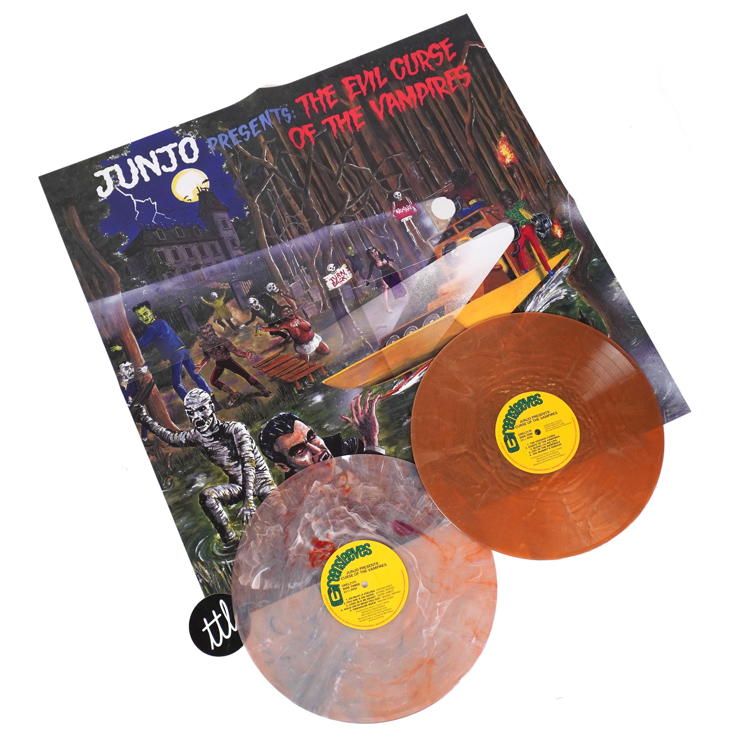 - 'scary splatter' colored double vinyl pressing