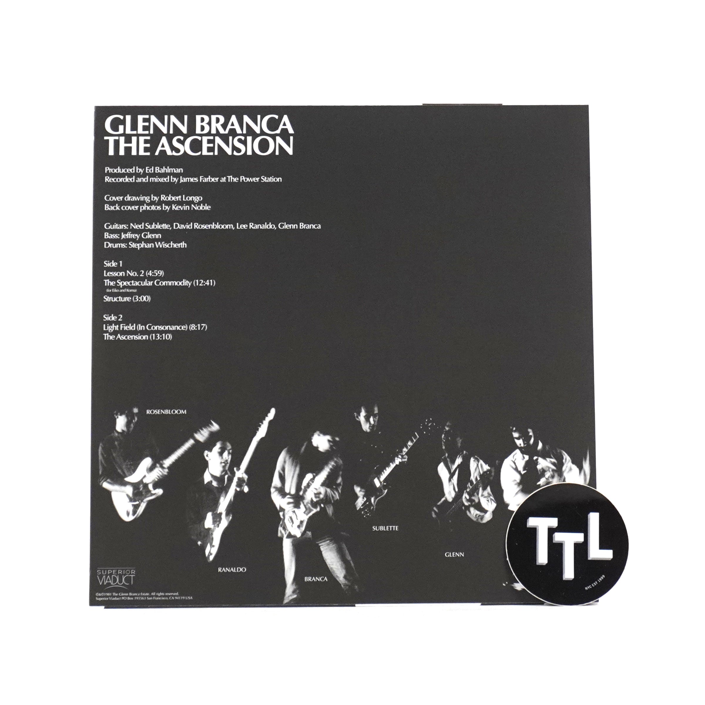 • "Glenn Branca's first full-length album The Ascension is a colossal achievement. After touring much of 1980 with an all-star band featuring four guitarists (Branca, fellow composers Ned Sublette and David Rosenbloom, and future Sonic Youth member Lee Ranaldo) along with Jeffrey Glenn on bass and Stephan Wischerth on drums, Branca took his war-torn group into a studio in Hell's Kitchen to record five incendiary compositions. Originally released in the summer of 1981, The Ascension effectively tears down the genre-ghettos between 20th century avant-garde and ecstatic rock 'n' roll. On 'The Spectacular Commodity,' chiming, shimmering tones unfold into sinister drone-territory à la Tony Conrad, while abrasive guitars and repetitive beats retain the raw primitivism of No Wave. The title track attains a densely packed, larger-than-life sound and (as author Marc Masters says best) 'never stops climbing skyward.' With artist Robert Longo's stark front cover that depicts Branca battling an unidentified man, The Ascension is a must-have record not only for fans of early Swans and Sonic Youth, but also of Steve Reich or Slint's Tweez." - Superior Viaduct