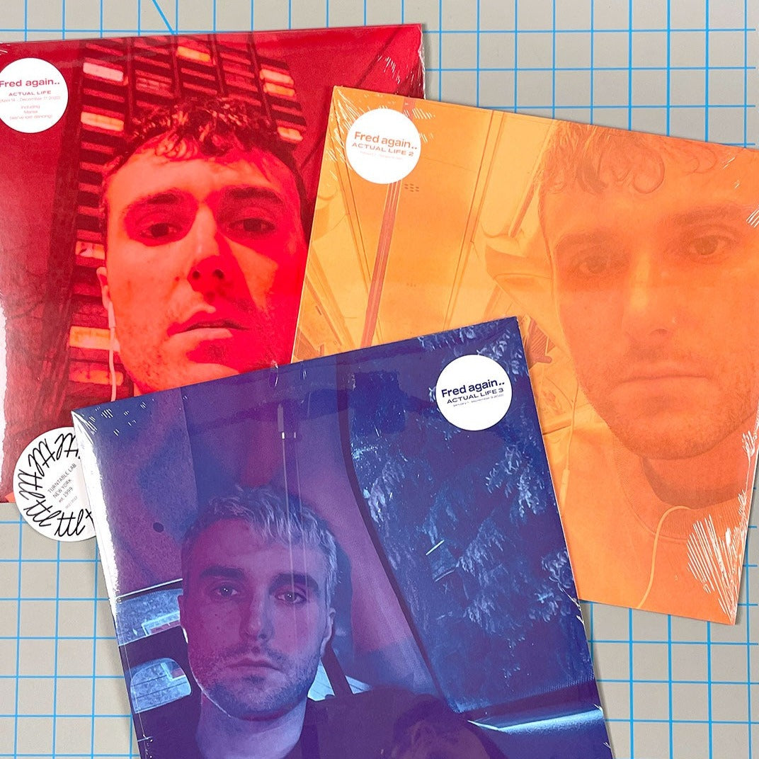 Our Fred Again.. Actual Life vinyl album pack includes all 3 volumes of Fred's acclaimed series on clear vinyl: