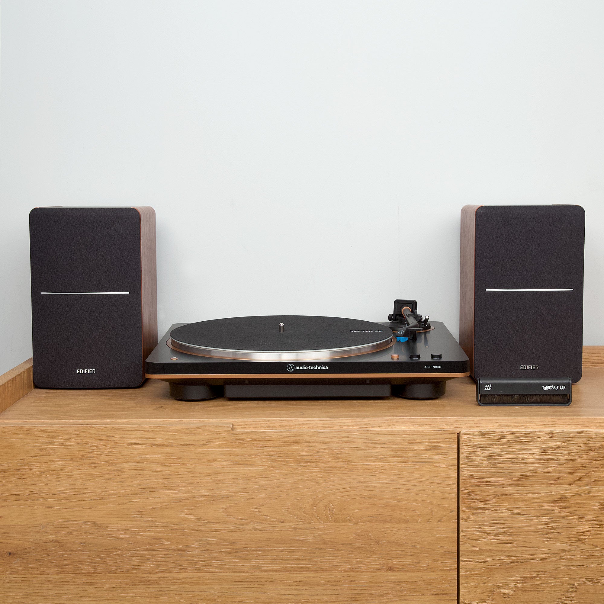 "The newly introduced AT-LP70X is the best entry level, automatic turntable in the $200-$300 price range. The cartridge, with its VM95 Series stylus, is solid out of the box, and can also be upgraded. The Edifier R1280DB Speakers are the best value - they sound great & feature bluetooth and EQ functions." - TTL