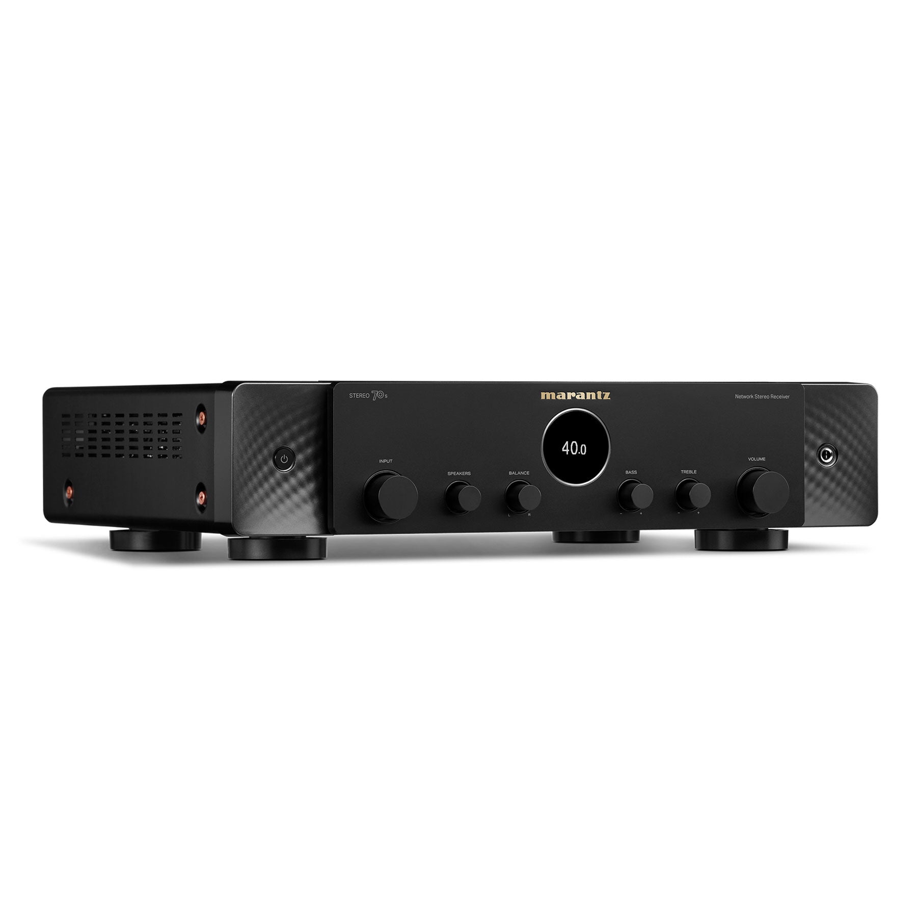 "STEREO 70s merges the flexibility and features found in our CINEMA Series AVRs into a slim and simple 2 channel receiver. 8K HDMI plus ARC facilitates connection of smart TVs, game consoles and streaming systems. On screen display uses your TV screen to assist with setup. Support for up to 2 subwoofers means plenty of deep bass even when using small bookshelf speakers. Carefully engineered with specially chosen components, STEREO 70s unveils the natural immersiveness and power of sound. Crystal clear digital decoding of up to 192 kHz 24-bit audio and DSD opens a new world of high resolution music with depth, breadth, and clarity not available with lossy files. " - Marantz