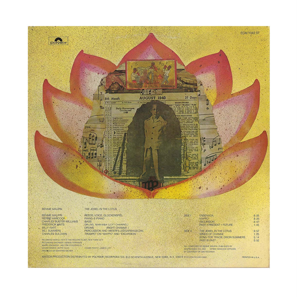 "Bennie Maupin has been an inventive contributor to iconic records including Miles Davis’s Bitches Brew, Herbie Hancock’s Mwandishi and Headhunters and Marion Brown’s Afternoon Of A Georgia Faun. His recordings under his own name have been infrequent but his leader debut, is indeed a jewel. 'A more selfless album is hard to imagine', said Down Beat in 1975. 'On The Jewel In The Lotus, the sound is supreme, and all the players strive to achieve a thorough blending'. Recorded in New York in 1974, the disc’s personnel is drawn from the circle around Herbie Hancock in the period, but the music has a character all its own." - ECM