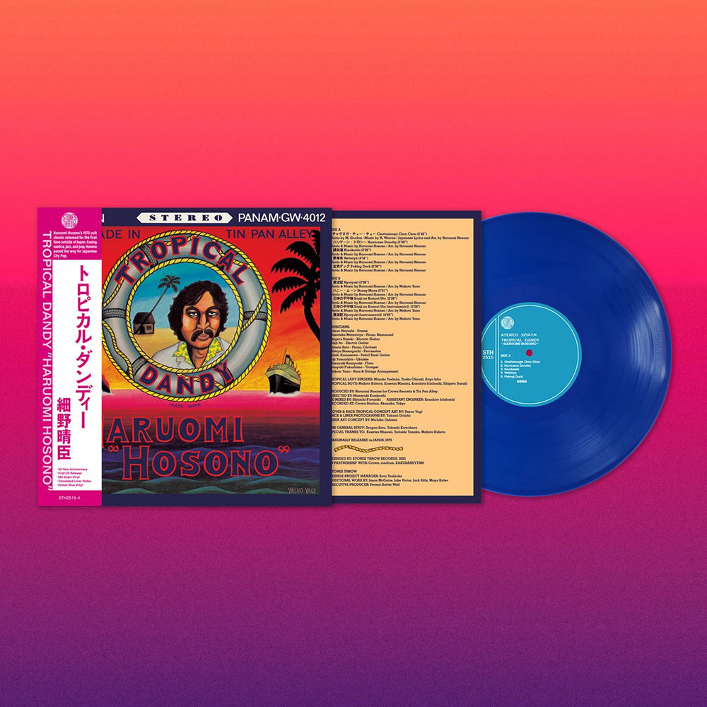 "Haruomi Hosono's Tropical Dandy receives its first-ever international reissue. Originally released in 1975, Tropical Dandy is a cult classic that marked Hosono’s shift toward genre-blending, fusing exotica, jazz, and pop to lay the groundwork for Japanese City Pop – described by none other than Van Dyke Parks as 'cinematic romance with sonic texture.' Pre-order today in limited edition Ocean Blue 180-gram vinyl, pressed in the US featuring exclusive OBI and a new translation of Haruomi Hosono's 1975 liner notes." - Stones Throw
