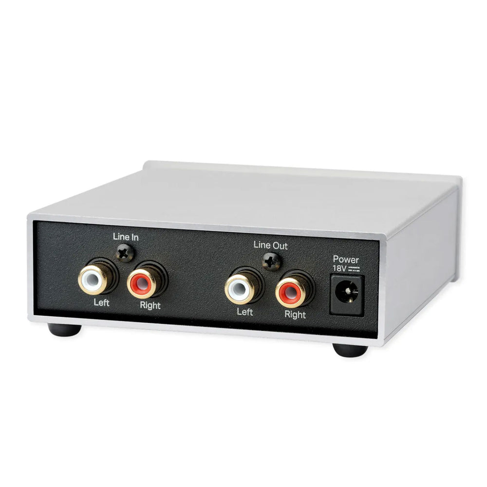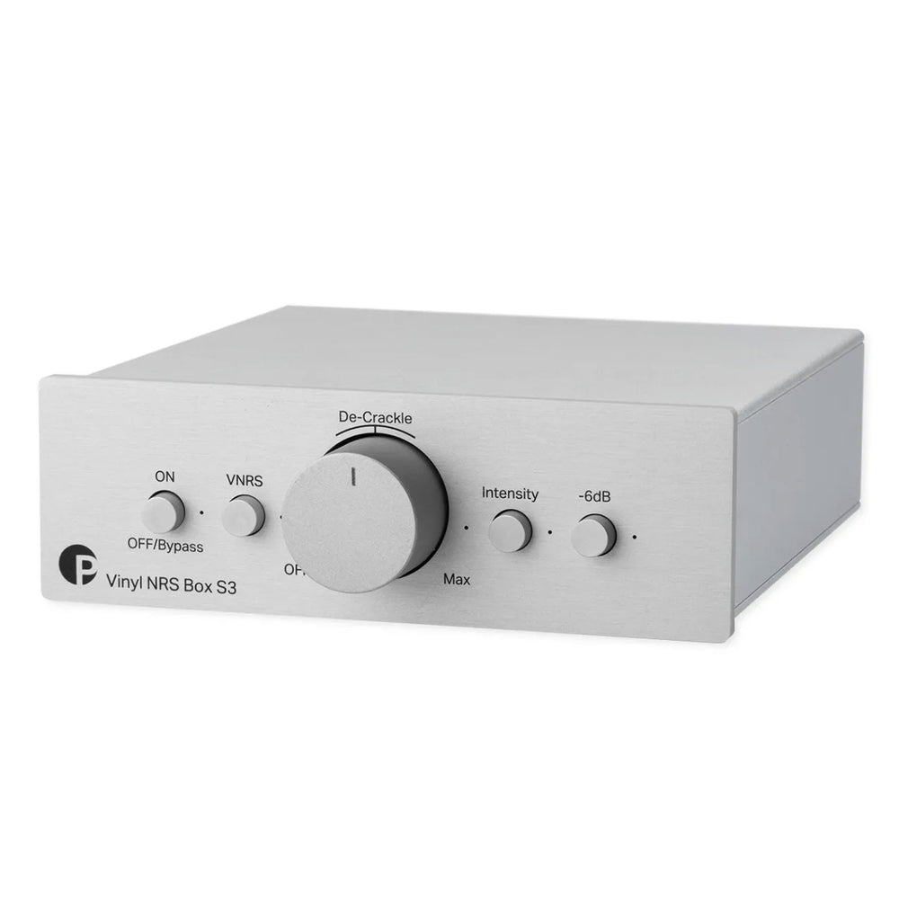 "Connect the output of your phono preamplifier to the Vinyl NRS Box S3. First, the line signal gets digitized with a bit depth of 24-bits and a sampling rate of 96 kHz. If the input is too loud, the overflow LED will show it to you. You can then activate the -6 dB switch and the gain is fine now. Crackling parts can be reduced by up to 8 dB which is a big improvement for the listening experience. You can easily adjust the sensitivity with the potentiometer on the front. If you don‘t want to use the De-Crackling function, just turn the potentiometer completely to the left and the algorithm is in bypass." - Pro-Ject