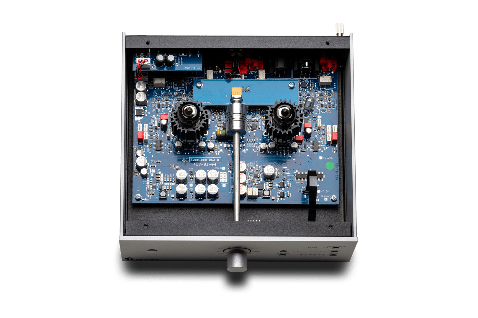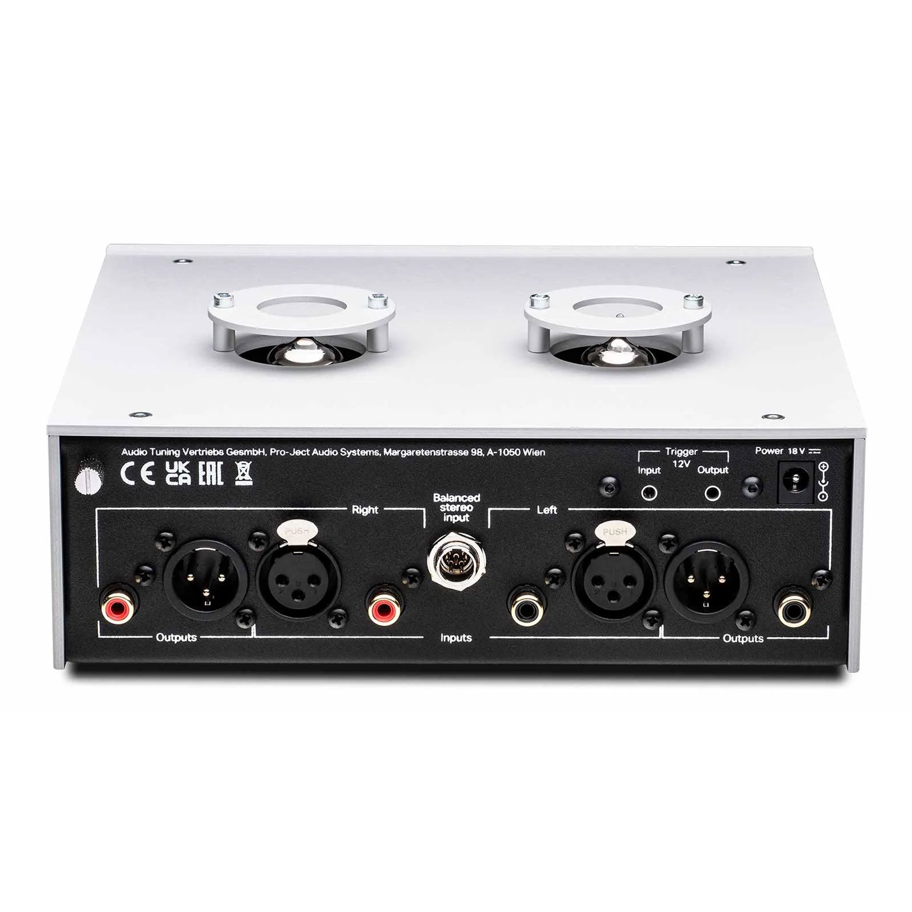 "The Tube Boxes have been an integral part of our product portfolio for many years. Now, the new Tube Box DS3 B adds balanced in- and outputs to the beloved tube amplification. This precision tube phono preamplifier benefits from outstanding circuit technology from Dr. Sykora and uses ultimate components. You can connect two turntables at the same time & easily set everything on the front plate. Each input settings are stored in the memory. Large ranges from 40dB up to 65dB are possible. You can perfectly match it with a wide variety of cartridges and integrate it into the rest of your Hifi system, matching the volume levels accurately to other sources like CD players or streaming devices. Load impedance can be set continuously via potentiometer, a system invented by Pro-Ject Audio Systems. It allows you to seamlessly adjust the impedance during playback and immediately assess the impact of different loading options. This is necessary to find just the right load impedance for your cartridge. No other manufacturers implement this feature in this extreme way." - Pro-Ject
