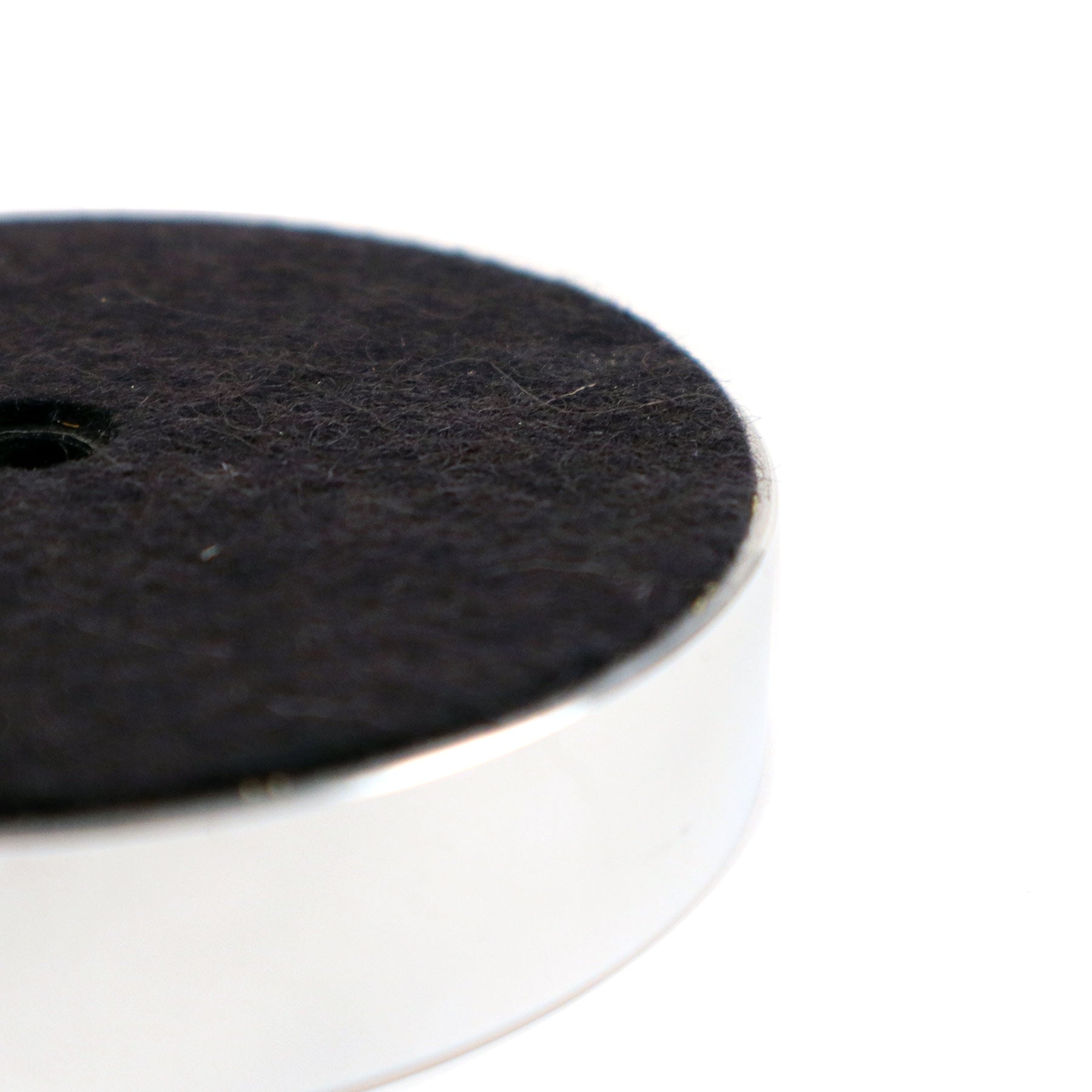 "This new record puck ensures a secure fit between record and turntable. With the two different finishes, black painted and polished silver, it perfectly fits the design of of our turntables. Record pucks use weight to secure a playing vinyl record against the turntable platter. By holding the two together, the sound performance of the turntable will improve, in timing and depth of sound. With a weight of 190 grams, this puck is perfect for smaller turntables in order not to burden the turntable bearing and to prevent an increase in rumbling." - Pro-Ject