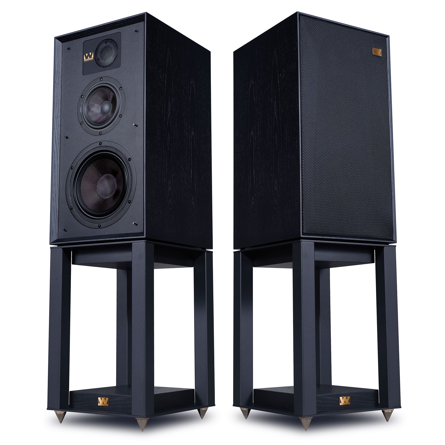 contemporary reproduction of heritage loudspeakers w/ height-optimized stands