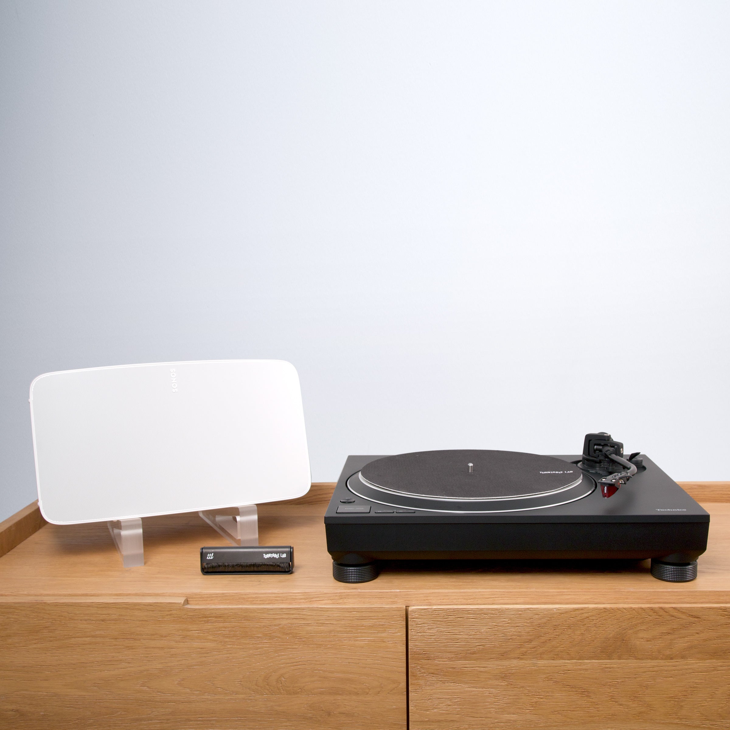 - SPEAKER: we like the Five's power, which allows you to play your records loud; add additional Fives for more coverage; the Sonos app lets you control volume and EQ remotely