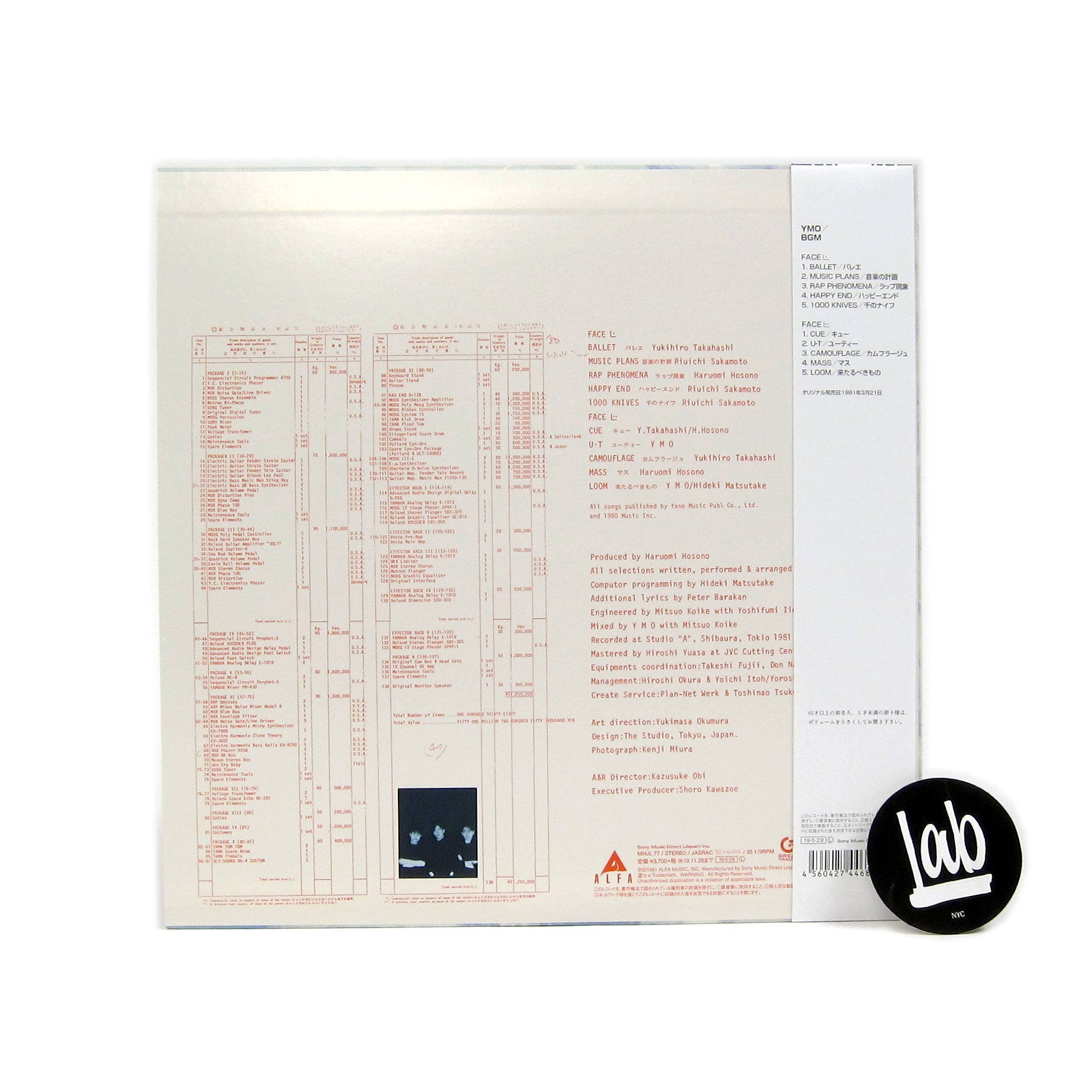 "Originally released in March 1981, BGM marked a turn from YMO's previous release with an overall darker and more serious tone that some considered to be a betrayal against their original fans. Years have been kind to BGM, however, and Hosono, Sakamoto, and Takahashi’s fourth studio release is now considered one of their masterworks. With an ahead-of-its-time mix of techno pop, electro, dub, and ambient, BGM was recorded using the latest recording technologies available at the time, including one of the earliest uses of the Roland MC-4 sequencer and the TR-808 drum machine on record." - Sony Great Tracks