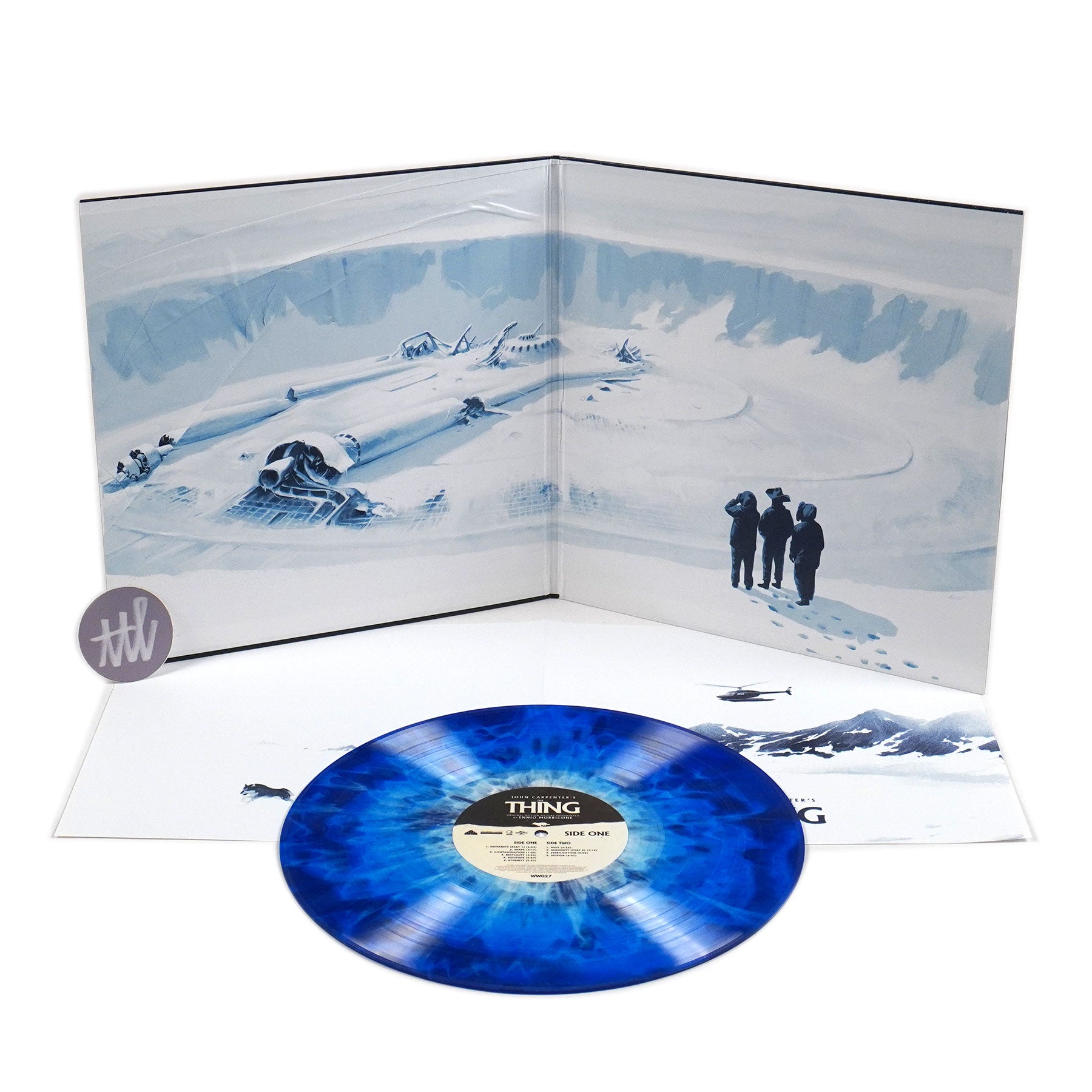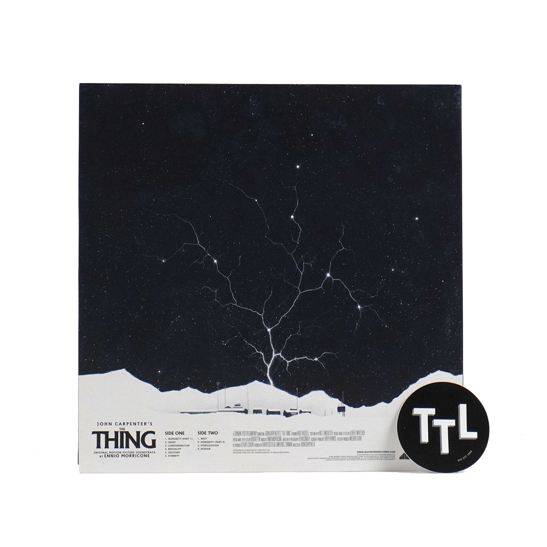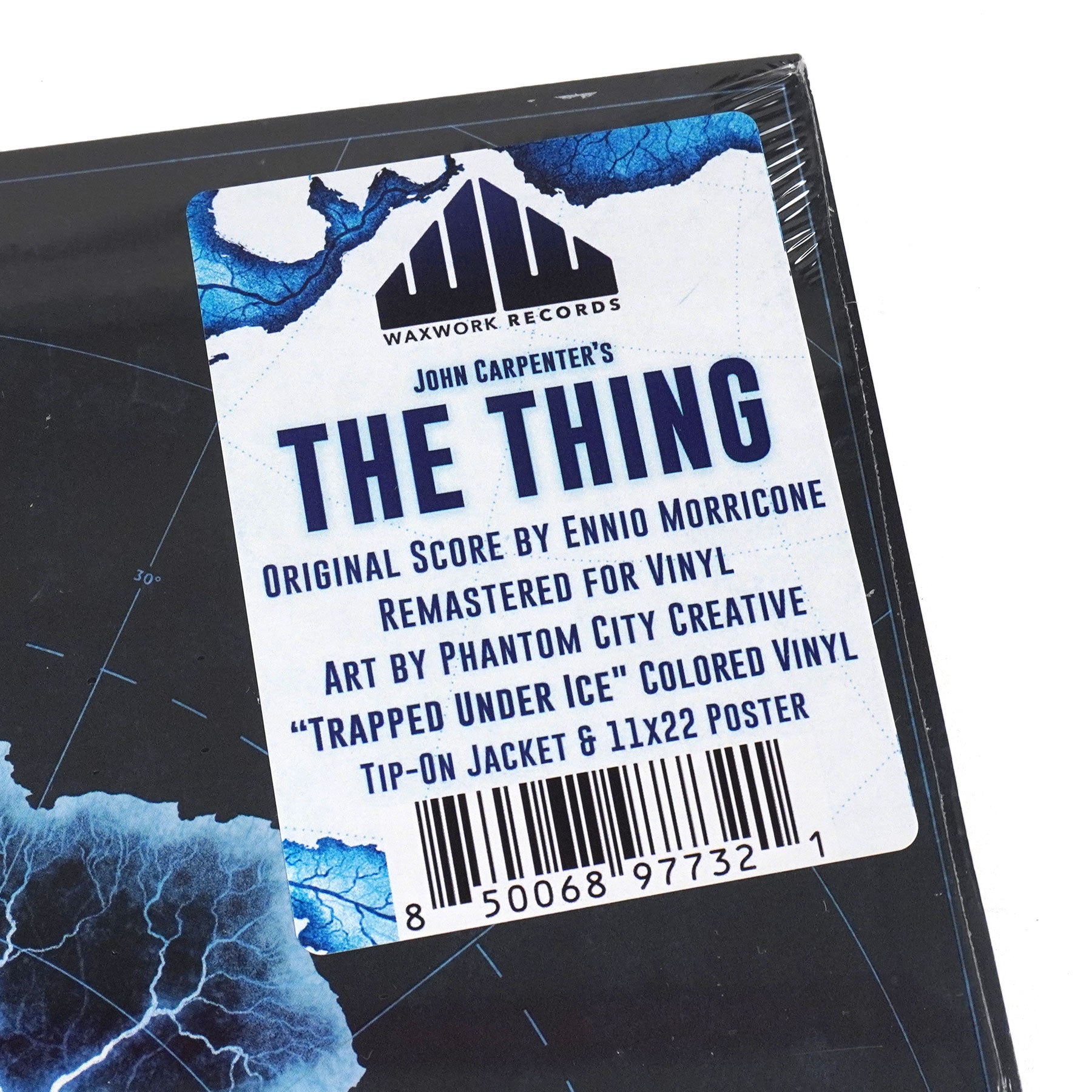 "Waxwork Records is thrilled to present the deluxe film score reissue to 1982’s sci-fi horror classic, John Carpenter's THE THING. Composed by the legendary Ennio Morricone, the score to THE THING is a landmark musical composition that is cold, dark, minimal, and effective. Considered to be John Carpenter’s directorial masterpiece, THE THING is praised as one of the greatest films of its genre by both fans and critics. Starring Kurt Russell and A. Wilford Brimley, THE THING follows a team of researchers in Antarctica as they are infiltrated by a parasitic extraterrestrial life form that assimilates other organisms and then imitates them. The classic soundtrack composed by Ennio Morricone effectively captures the cold, isolated tone of the story and film, and marks one of the few John Carpenter directed films that Carpenter did not score himself. Waxwork Records worked to ensure that such a highly anticipated and sought after vinyl film core re-issue would meet and exceed expectations. Features include the complete Ennio Morricone score re-mastered, 'Trapped Under Ice' colored vinyl, artwork by Phantom City Creative, deluxe heavyweight packaging including satin coated old-style gatefold jackets with UV spot-gloss varnish, and an 11” x 17” poster." - Waxwork Records
