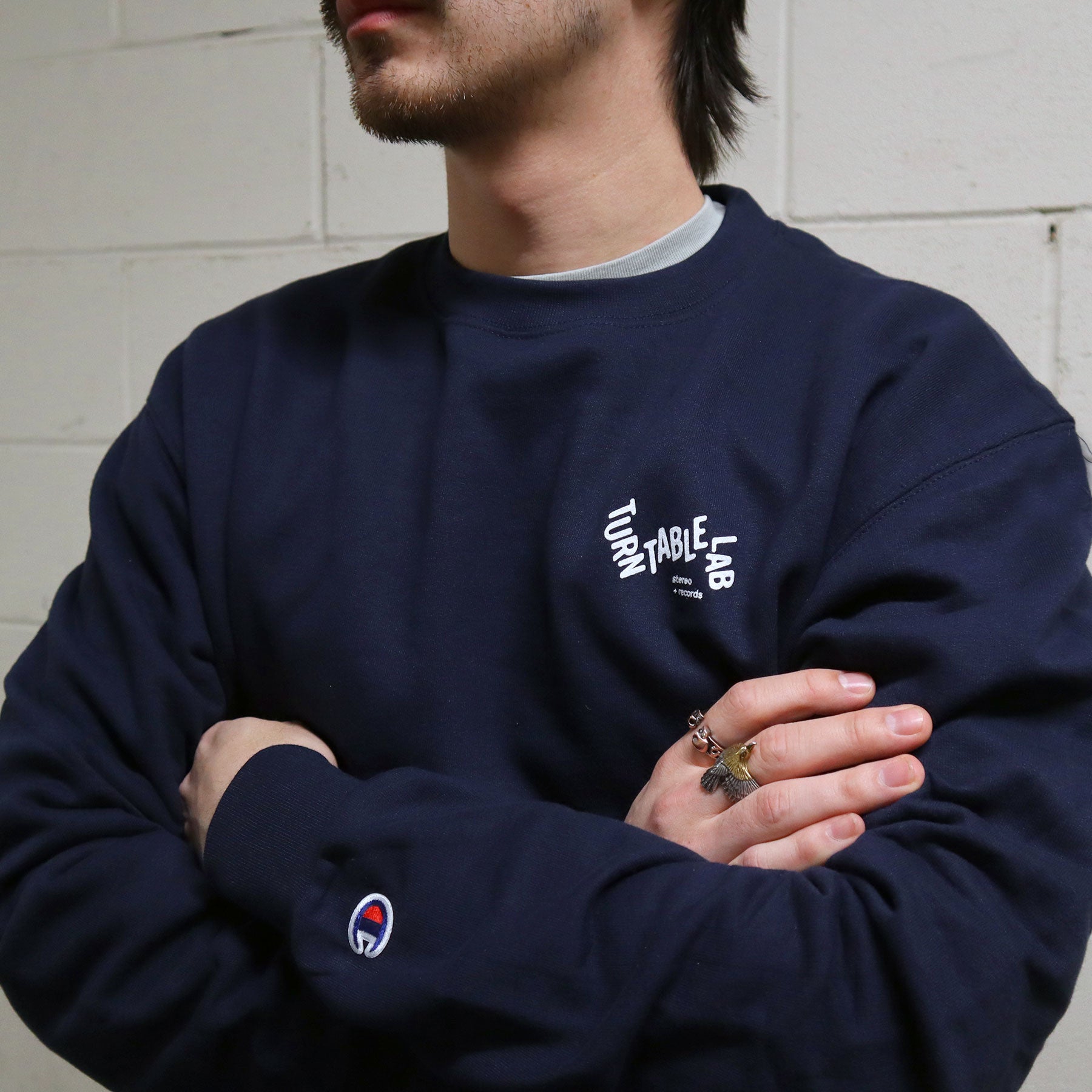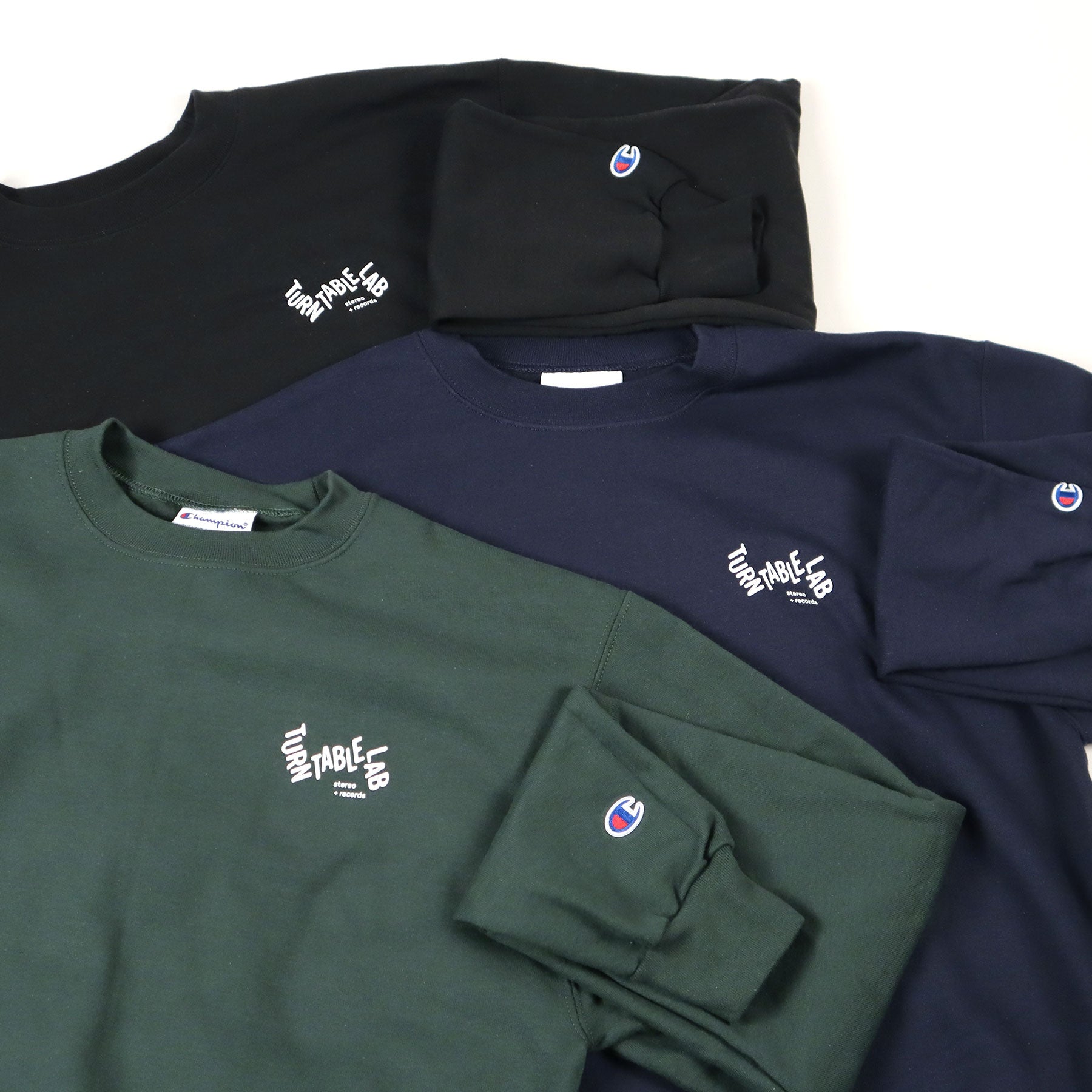 - TTL logo screenprinted on Champion Powerblend crewneck sweatshirt