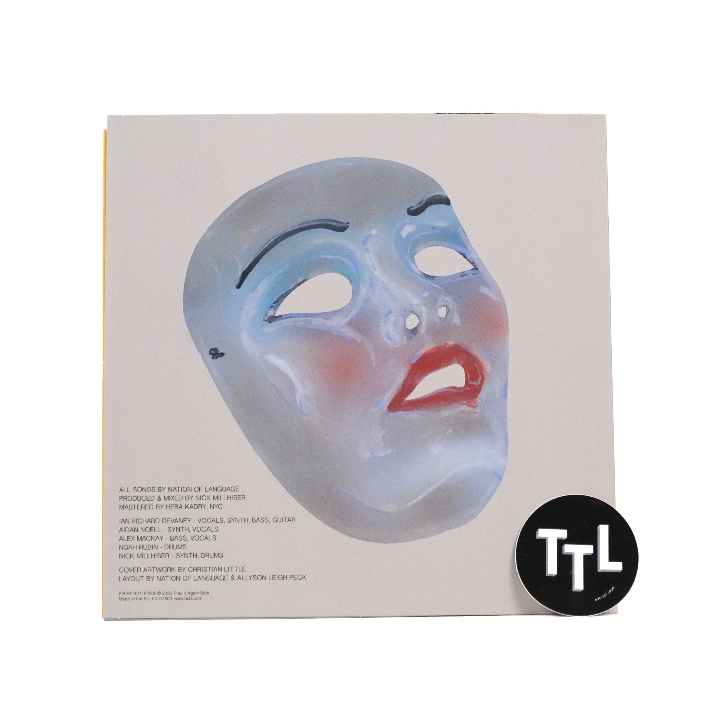 "Nation of Language have attracted an increasing, international audience with their danceable and impassioned takes on new wave and post-punk traditions. Their hopeful music-marked by soaring melodies, blinking synth lines, and frontman Ian Devaney's towering voice-is a ray of light in an era of anxiety, cynicism, hatred, and snark. Following the critical acclaim of their 2020 debut album, Introduction, Presence, and it's 2021 follow-up, A Way Forward, Nation of Language return with their third studio album, Strange Disciple. Recorded in the East Williamsburg home studio of their producer Nick Millhiser (LCD Soundsystem / Holy Ghost!), it is the band's first album recorded completely to analog tape. The sonic direction of the record became clear after the band wrote 'Sole Obsession,' 'Spare Me the Decision,' and 'Sightseer,' all groovy, bass-driven songs that deviate from the straight-forward drive of A Way Forward. As their bass lines became more playful and ambulatory, they also relied more on the electric guitar, which had largely been a background element up until this point. Strange Disciple is a spiritual, searching record. We follow a bumpy journey of self-exploration, stumbling on moments of clarity and wisdom, and then getting tripped up again. It's an invitation to both celebrate and mourn, find yourself and lose yourself, reflect on one's infatuations and perhaps even form new ones with these songs." - Play It Again Sam
