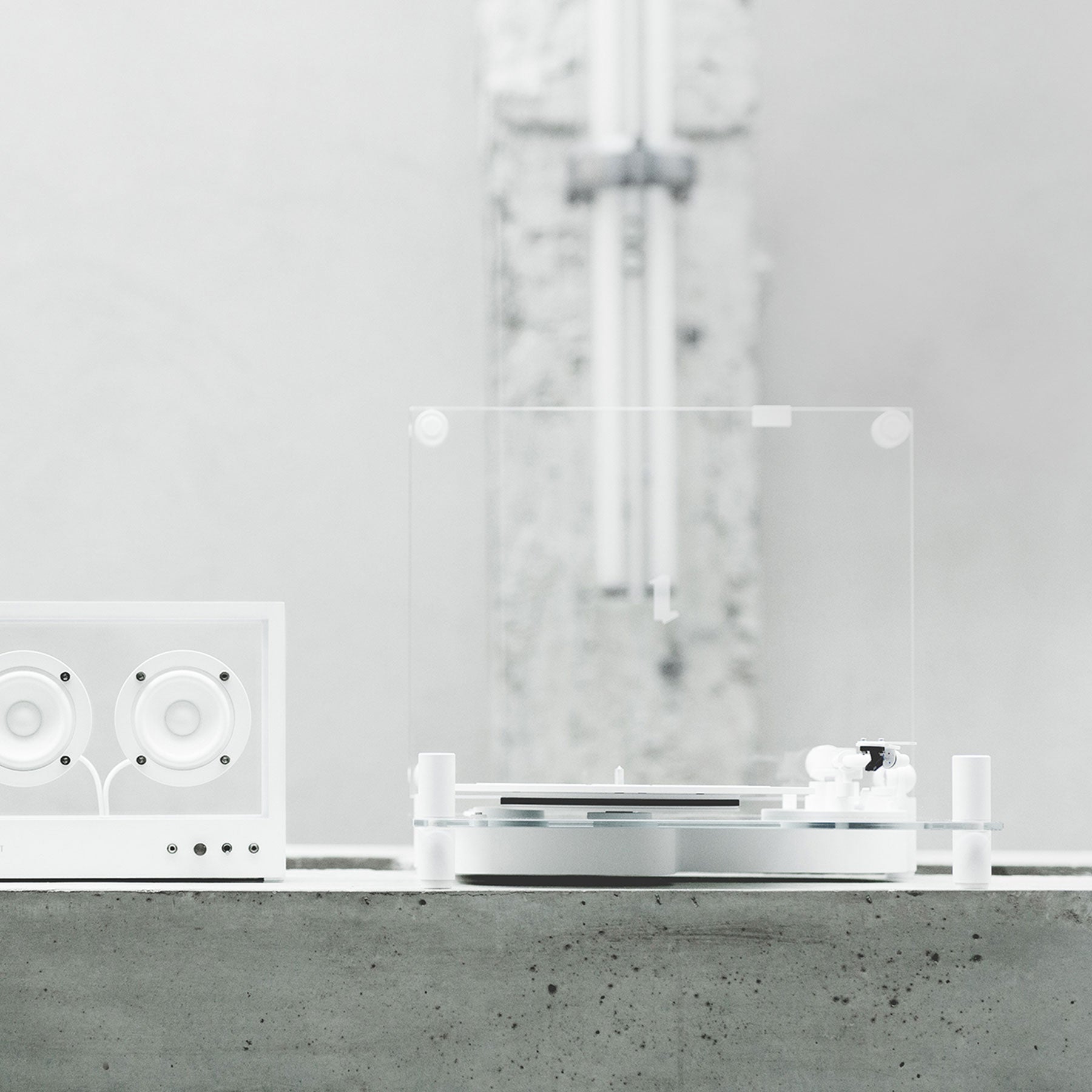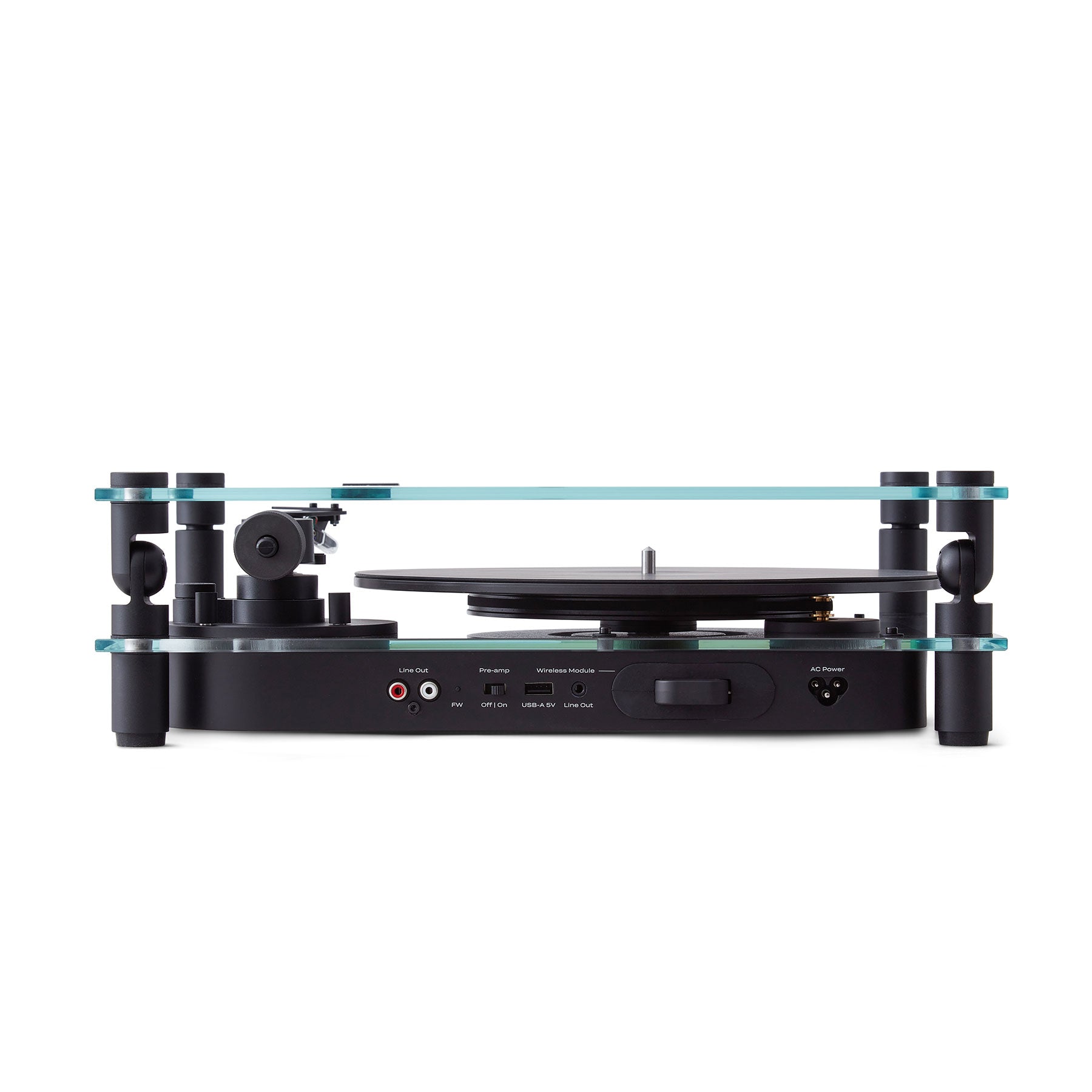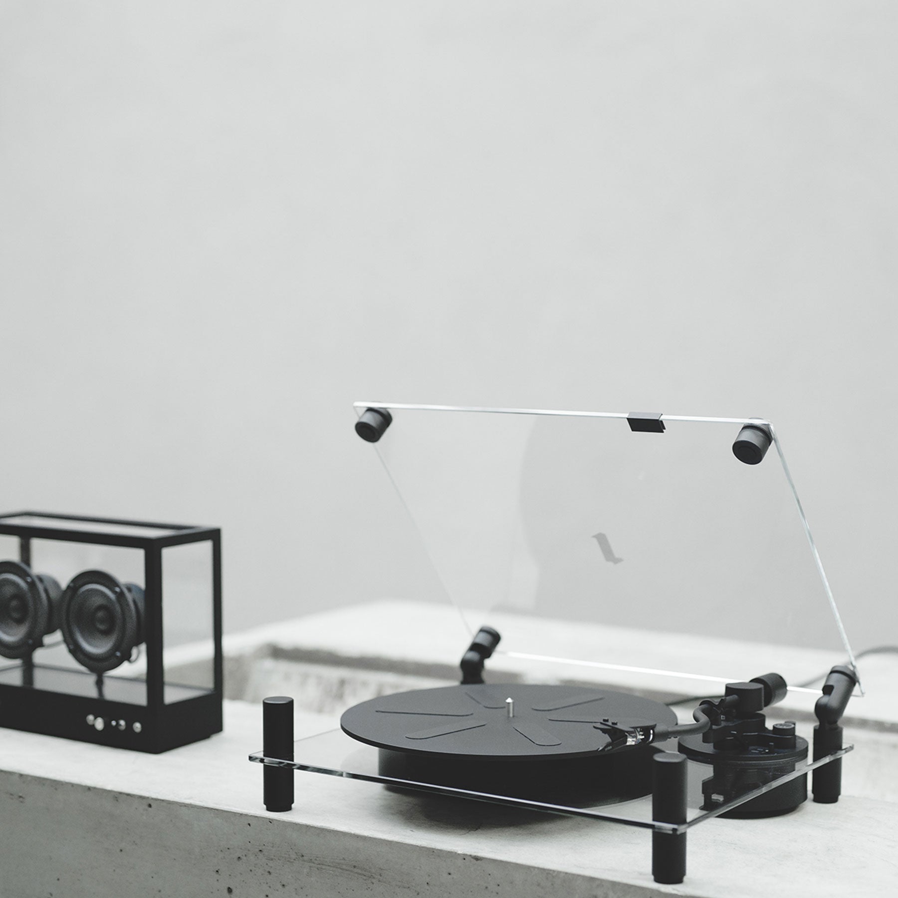 - innovative belt-drive turntable constructed of aluminum + tempered glass