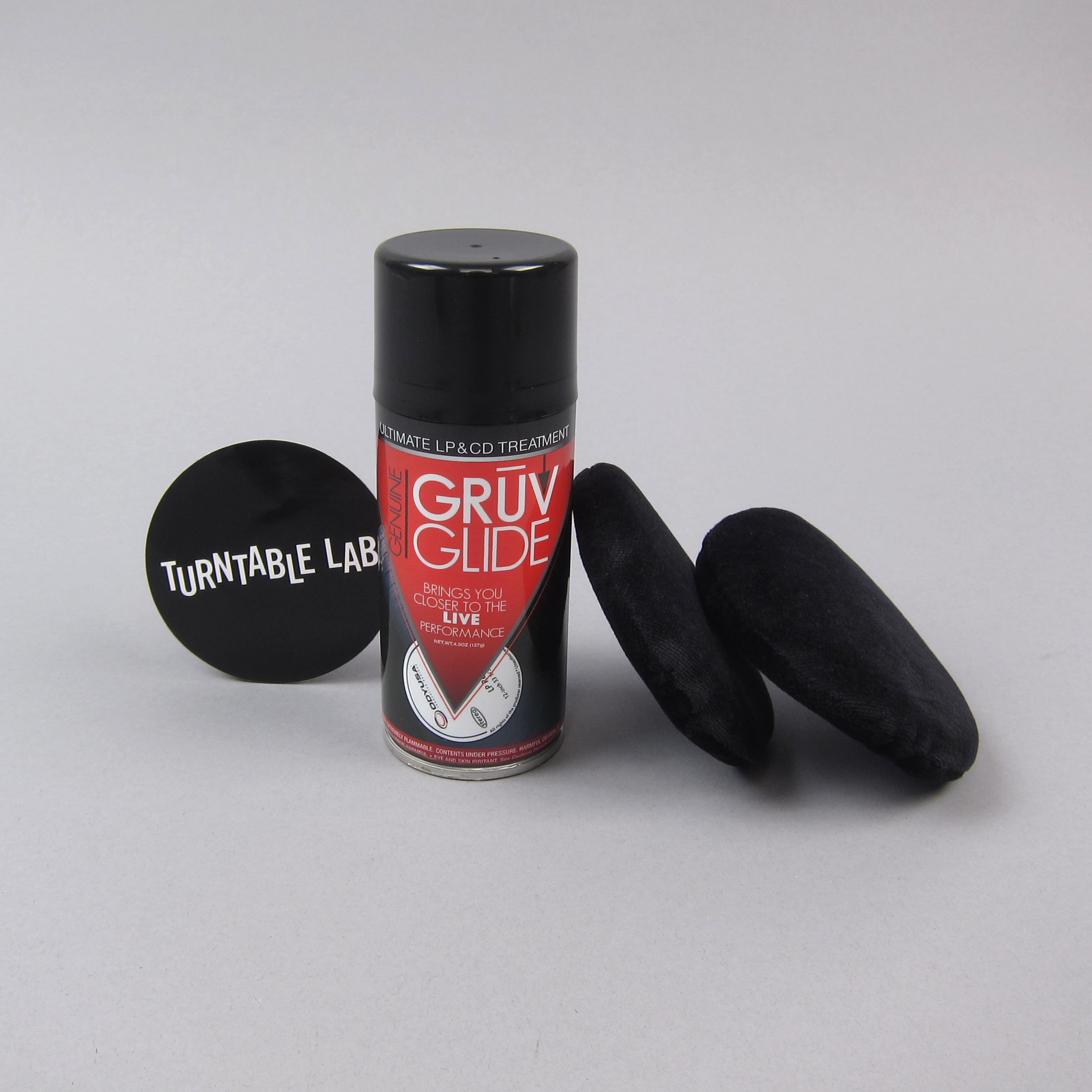 It's back! Gruv Glide has been out of production for a couple years, but we're glad to announce the cult favorite record cleaner has returned. Many DJ's and vinyl collectors swear by this stuff, and for good reason, it really works! The kit comes with 2 cleaning pads and a specially formulated spray cleaner. When used properly, the process cleans your records efficiently, removes static and improves the sound quality on any record. With proper application, it will also improve tracking by providing a microscopic layer of lubrication that reduces record wear and prevents static build-up, ultimately making your records and your styli last longer. One set can treat 300 sides (150 records). You can also use this on CDs, follow the enclosed instructions. Recommended.