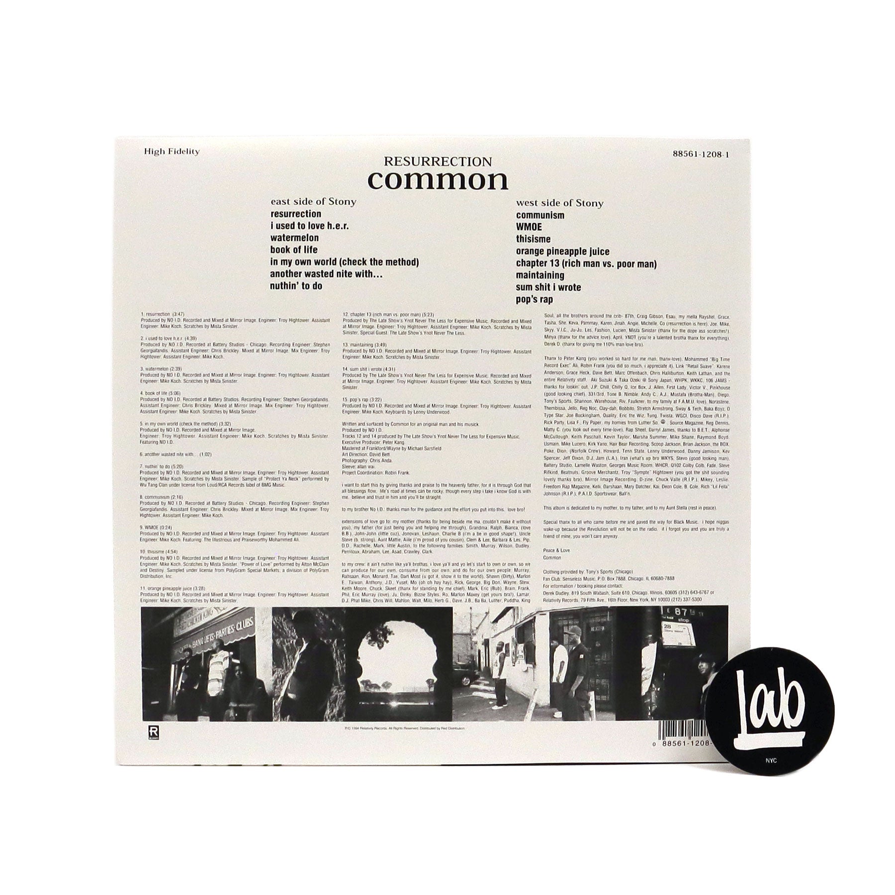 Common's first album (Can I Borrow A Dollar?) had some promise, but he really solidified himself with Resurrection, one of the best full lengths of the era. A rare sophomore effort that overshadows the debut. It's another of the golden era hip hop albums that was really made as a whole (vs. the hit single focus today). No obvious weaknesses here as the lyricism and beats win games. NO ID plays Phil Jackson behind the boards as he puts some magic into the beats. Amazing shit: "Resurrection," "I Used to Lover Her," "Communism," "Chapter 13," "Watermelon," "Nothin to Do" and "Maintaining". Single LP press just like the O.G. (except this has 'Common' on the cover instead of 'Common Sense'), guaranteed this will be glued to your turntable.