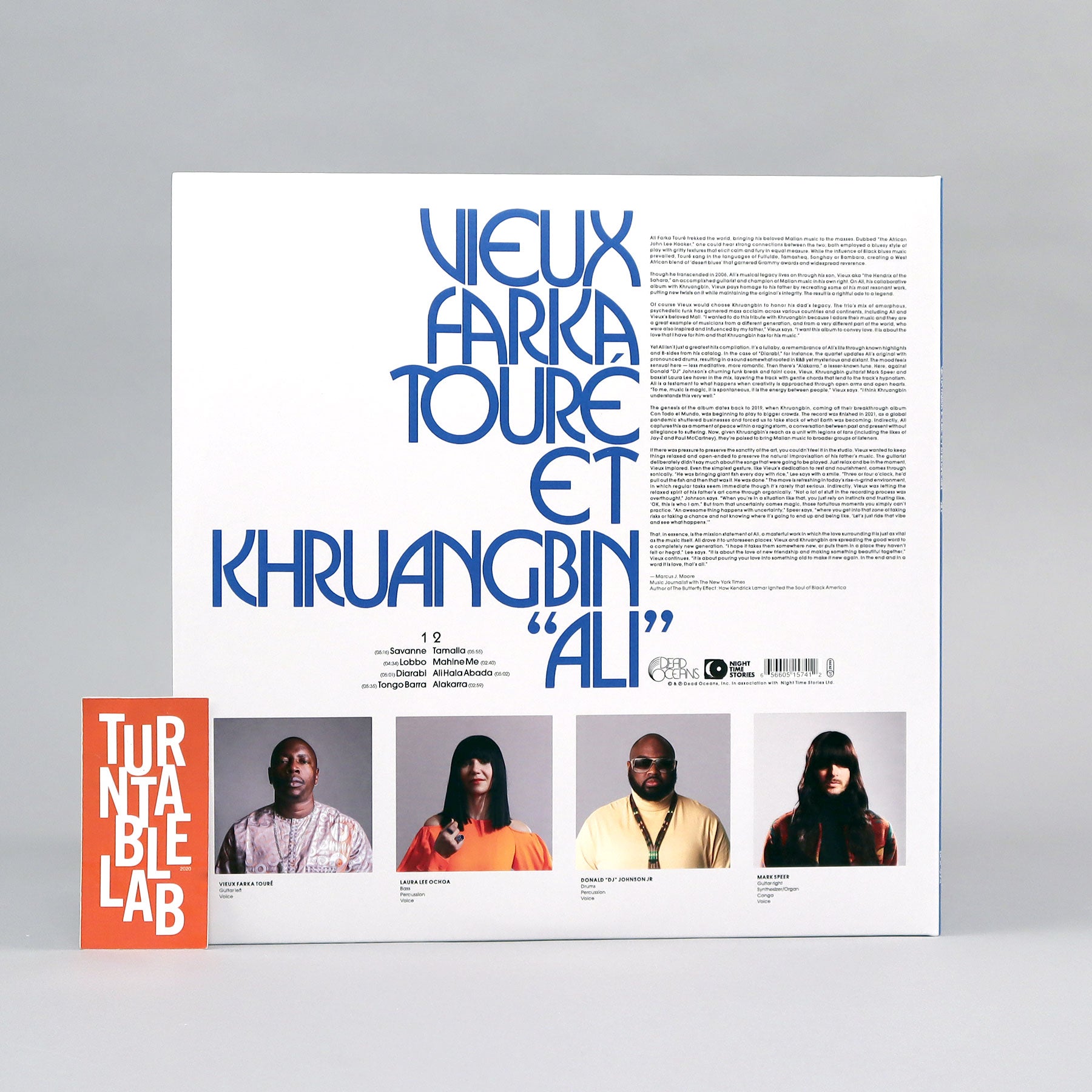 "Ali Farka Touré trekked the world, bringing his beloved Malian music to the masses. Dubbed "the African John Lee Hooker," one could hear strong connections between the two; both employed a bluesy style of play with gritty textures that elicit calm and fury in equal measure. While the influence of Black blues music prevailed, Touré created a West African blend of 'desert blues' that garnered Grammy awards and widespread reverence. Though he transcended in 2006, Ali’s musical legacy lives on through his son, Vieux aka "the Hendrix of the Sahara," an accomplished guitarist and champion of Malian music in his own right. On Ali, his collaborative album with Khruangbin, Vieux pays homage to his father by recreating some of his most resonant work, putting new twists on it while maintaining the original’s integrity. The result is a rightful ode to a legend. Ali isn’t just a greatest hits compilation. It’s a lullaby, a remembrance of Ali's life through known highlights and B-sides from his catalog. It is a testament to what happens when creativity is approached through open arms and open hearts. The genesis of the album dates back to 2019, when Khruangbin, coming off their breakthrough album Con Todo el Mundo, was beginning to play to bigger crowds. The record was finished in 2021, as a global pandemic shuttered businesses and forced us to take stock of what Earth was becoming. Indirectly, Ali captures this as a moment of peace within a raging storm, a conversation between past and present without allegiance to suffering. Now, given Khruangbin’s reach as a unit with legions of fans (including the likes of Jay-Z and Paul McCartney), they’re poised to bring Malian music to broader groups of listeners. Ali is a masterful work in which the love surrounding it is just as vital as the music itself, driving it to unforeseen places; Vieux and Khruangbin are spreading the good word to a completely new generation." - Dead Oceans