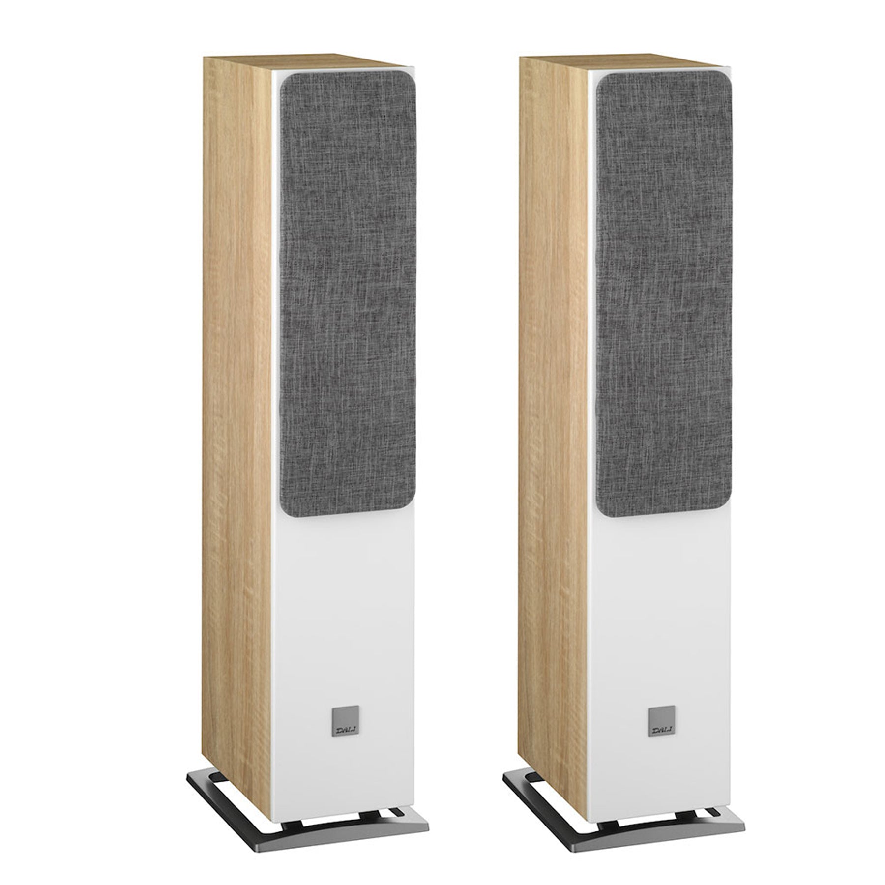"The DALI OBERON 5 is the ultimate performer - a compact and elegant floor-standing speaker, housing 2 x 5¼” wood fibre based woofers with SMC and the series’ wide bandwidth 29 mm ultra-lightweight soft dome tweeter. This slim floor-stander will surprise with its ability to deliver a deep firm bass together with a clear and well defined mid-range and airy high frequencies." - Dali