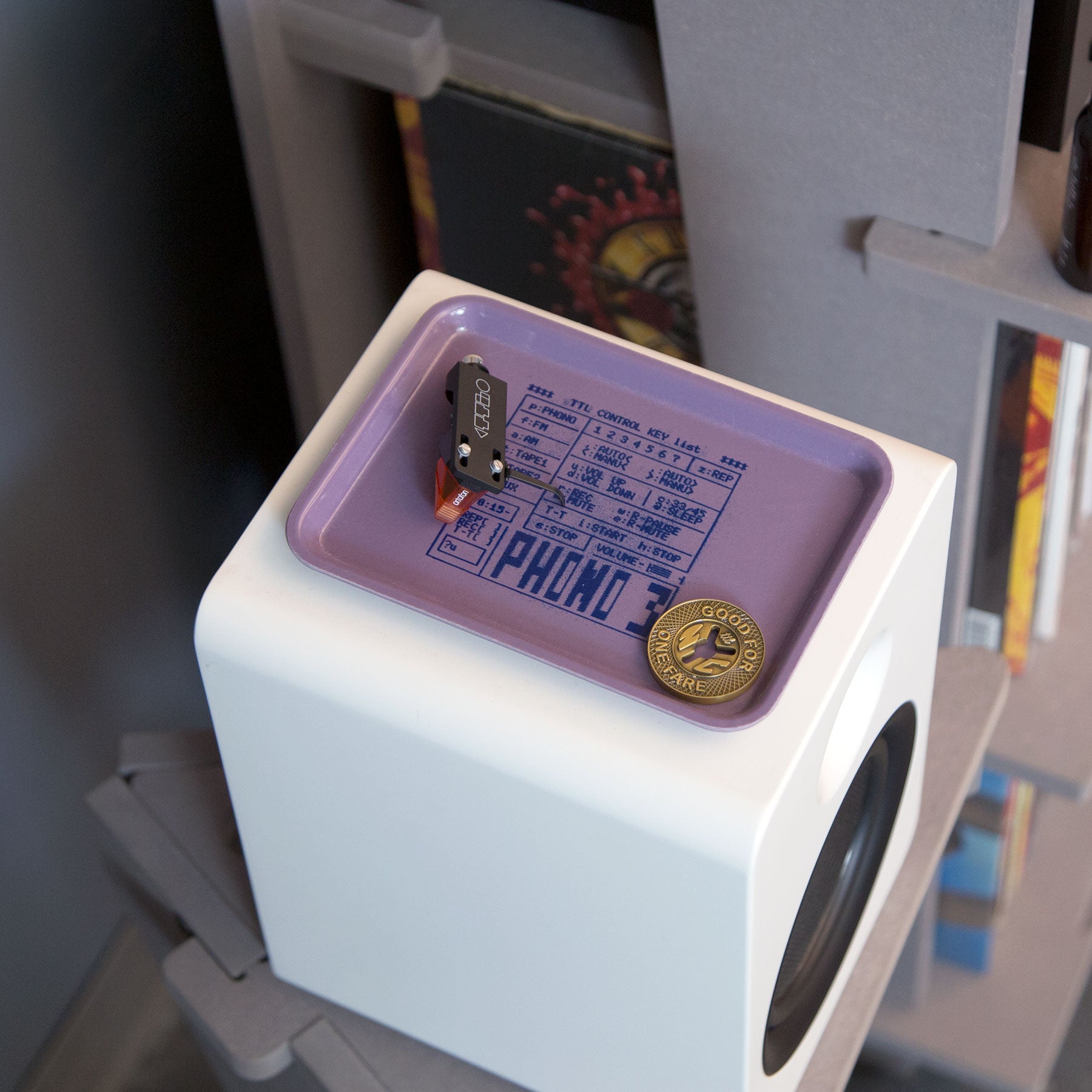 - custom Lab-designed accessories tray, holds 45 adapters, vinyl cleaning accessories, thumb drives, earbuds + more