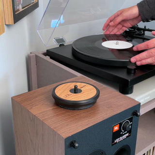 "We've all been in this situation, whether you're DJing or playing records for friends. You want to make a quick change to another record. You don't want to fumble with record sleeves (plus outer and inner sleeves), so you throw the bare record into the crate or haphazardly place on any open flat surface. This ingenious, simple solution creates a stable, non-scratch base so you can put the next record on, then easily come back to file away your record. The Transit Platter also serves as a great platform to clean and inspect records - no grooves touch the surface allowing you to clean both sides without harming your record or waiting for one side to dry." - TTL