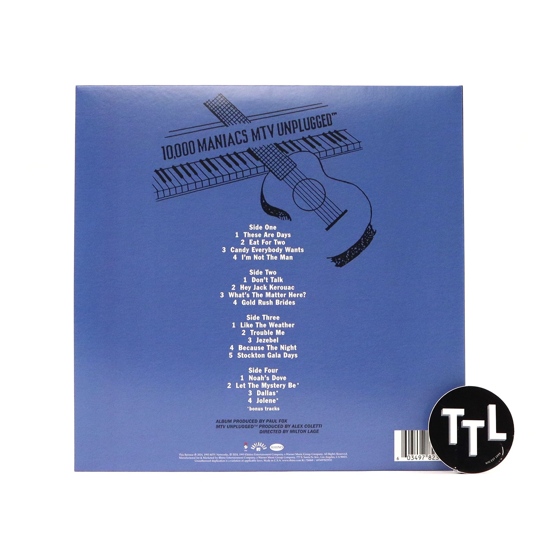 "Double vinyl LP pressing. Digitally remastered and expanded edition. Originally released in October 1993, MTV Unplugged is 10,000 Maniacs' most commercially successful album, featuring the band's best-loved songs and marks the final recording with lead singer Natalie Merchant before she embarked on her solo career. Includes newly remastered sound, as well as bonus tracks with the band being joined by vocalist guest David Byrne. The collection showcases acoustic versions of songs from three of the band's previous albums: In My Tribe (1987), Blind Man's Zoo (1989), and Our Time in Eden (1992). Highlights include a cover of 'Because The Night', hits such as 'Trouble Me,' 'These Are Days,' and 'Candy Everybody Wants,' along with fan favorites like 'Hey Jack Kerouac' and 'Like The Weather.'" - Elektra