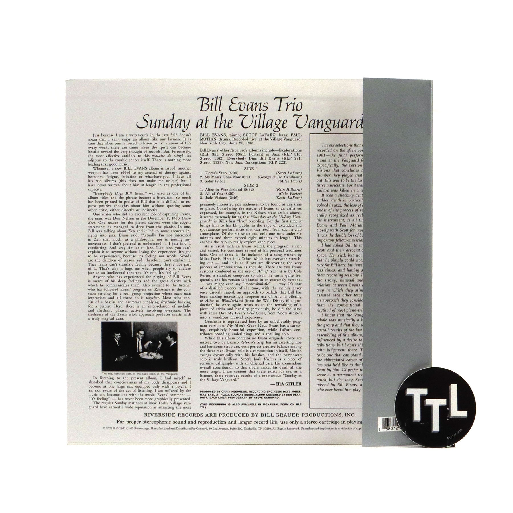 "The first of two albums recorded at the legendary final appearance of the Bill Evans Trio at the Village Vanguard, these recordings have long been recognized as capturing the unique interaction that characterized the trio of pianist Bill Evans, bassist Scott LaFaro and drummer Paul Motian. This new edition of Sunday At The Village Vanguard is released as part of the OJC Series and is pressed on 180-gram vinyl at RTI with all-analog mastering from the original tapes by Kevin Gray at Cohearent Audio. It is presented in a Tip-On Jacket." - Original Jazz Classics