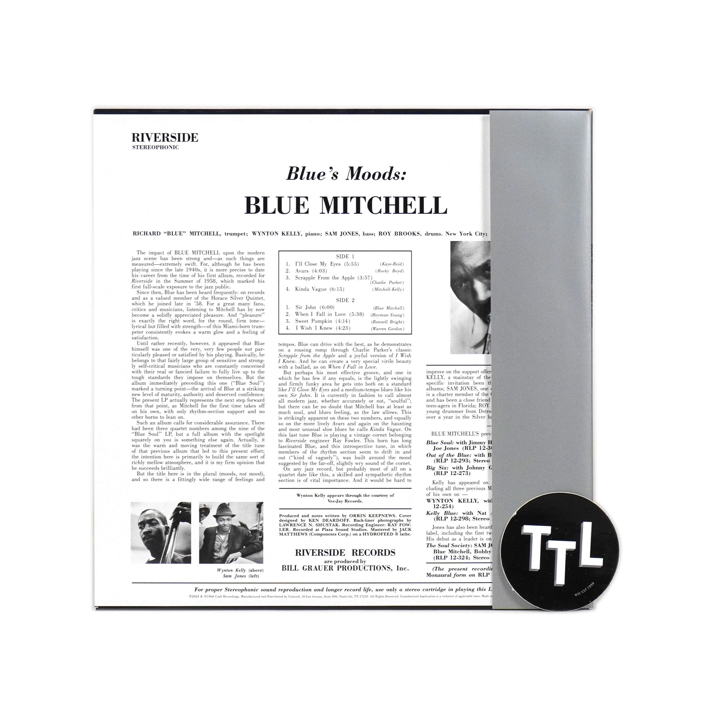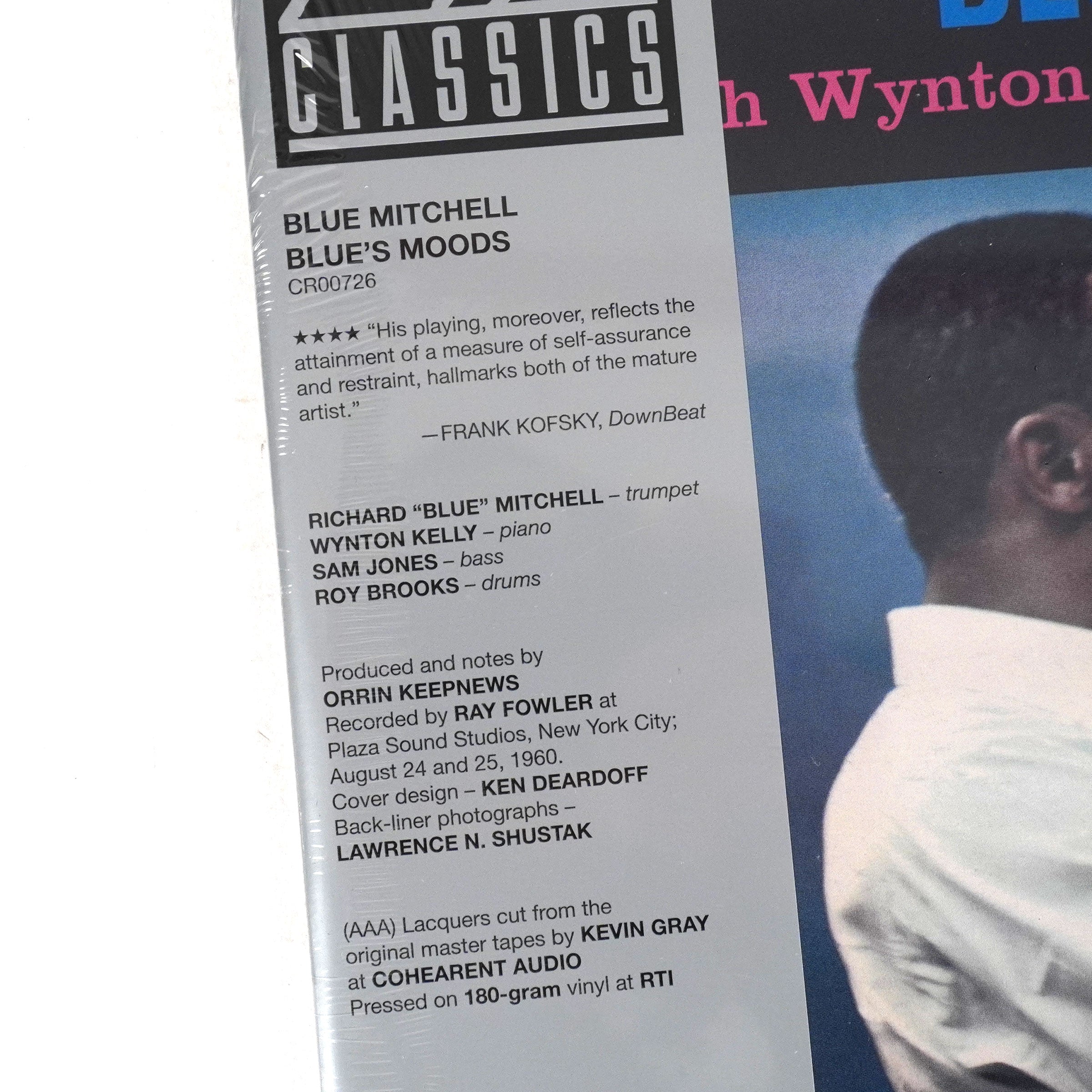 "Blue’s Moods is a 1960 album by jazz trumpeter Blue Mitchell. Originally released on the Riverside label it features Mitchell alongside Wynton Kelly (piano), Sam Jones (bass), and Roy Brooks (drums). This new edition of the album is released as part of the Original Jazz Classics Series and is pressed on 180-gram vinyl at RTI with all-analog mastering from the original tapes at Cohearent Audio and presented in a Tip-On Jacket." - Original Jazz Classics