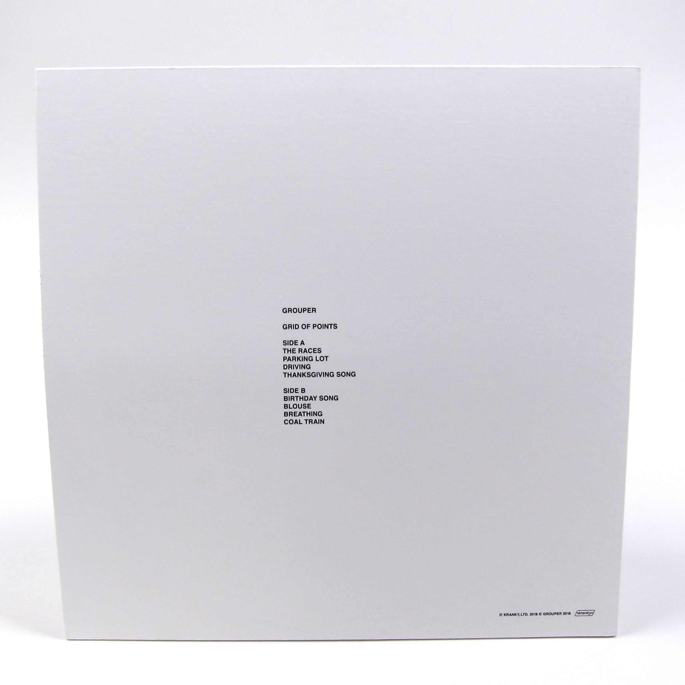 • The latest Grouper record was recorded during a residency in Wyoming in 2014, but interrupted when Liz Harris fell sick. Rather than picking it back up later under a different set of circumstances, she accepted it for what it was and allowed the brevity of the work to further inform its meaning: “The intimacy and abbreviation of this music allude to an essence that the songs’ lyrics speak more directly of,” she says. “The space left after matter has departed, a stage after the characters have gone, the hollow of some central column, missing.” Like Ruins, Grid Of Points finds Harris quietly baring her soul over tender piano melodies without the lo-fi fuzz of earlier career-defining works, but reintroduces a touch of reverb and overdubbed vocal harmonies back into the mix. The result is a ghostly, disarming set of songs that feel once removed by a sheet of white linen dividing the room, but still more close than we’re used to. Her lyrics are still pretty much indecipherable, something we’ve come to accept over a painful decade of trying to extract meaning from her work (although she was kind enough to include the lyrics to “Birthday Song” here). “Once a song has left me I want it to belong to whoever finds it. I write a song about feeling isolated. Listeners know the song is about their mother dying, the birth of their child, the way their last relationship ended. All these things and more. An open door.” Closing track “Breathing” is one of the most stirring Grouper songs to date; after a minute and a half of her dreamy incantation and restrained piano, she quietly lets herself out (presumably for another 4 years) behind the sound of a freight train that chugs along for the final two minutes. The record's outer sleeve features an original drawing from Harris' Double Object series, and includes a double-sided black & white insert. Recommended.