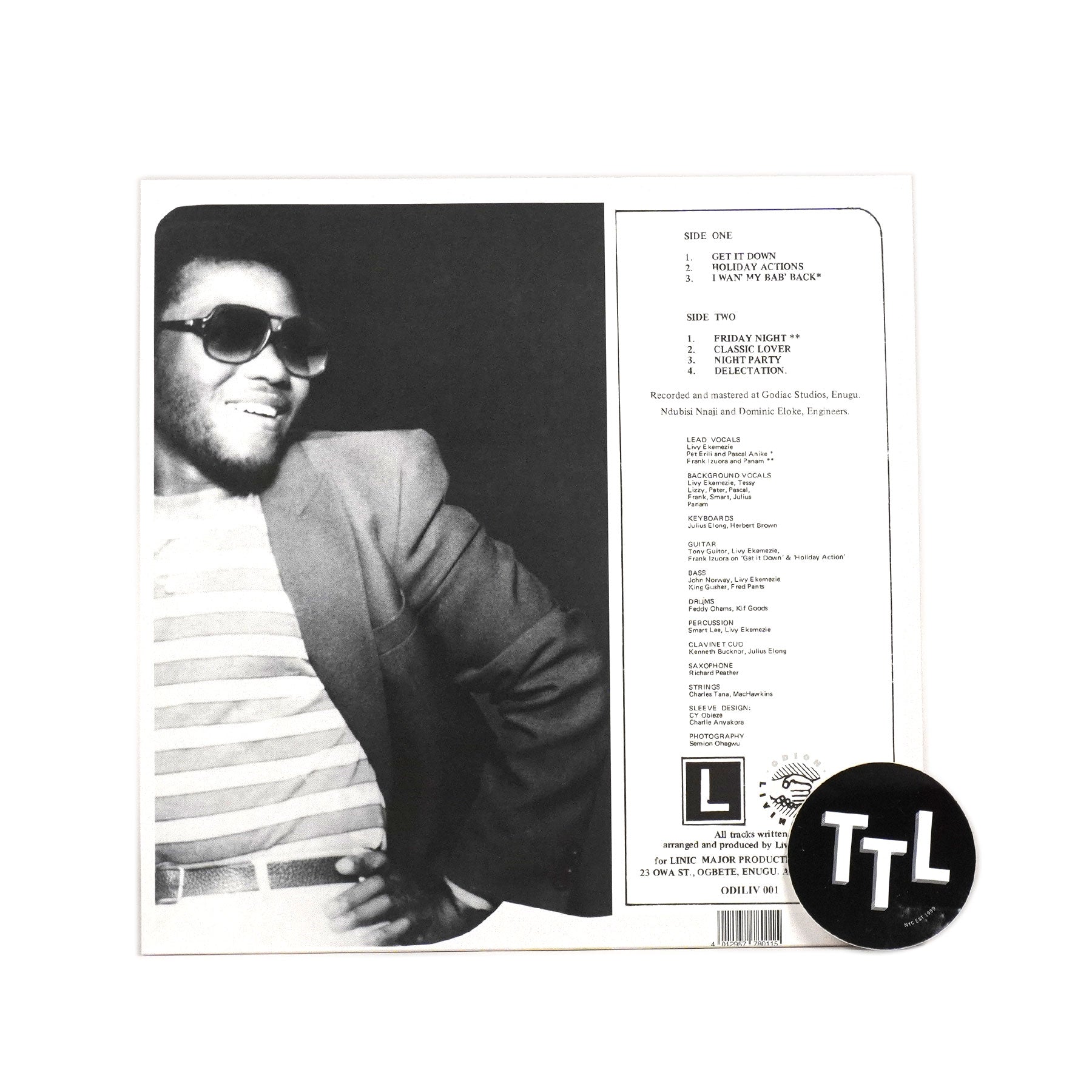 "Odion Livingstone, based out of Lagos, Nigeria, present its debut release, a reissue of the sought-after Nigerian disco LP rarity Friday Night by Livy Ekemezie, originally released in 1983. 'I was just out of senior secondary school and I wanted to make an album,'' recalls Ekemezie. "I was into disco and funk at the time and I was looking for a bass-driven funky sound. The entire idea was to make an album that sounded like something made in London or the U.S. I tried to sound 'American' but we ended up with something else: a mix of American and Nigerian.' Friday Night was recorded at Goddy Oku's Godiac 24-track recording studio in Enugu, one of the best studios available in Nigeria at the time. 'It took about nine months to a year to make the album,' continues Ekemezie. 'I financed it by myself so I had to resort to friends helping out with loans for session men and studio time. The original LP was released on blue vinyl and that idea came from William Onyeabor. We used his pressing plant and he sold the idea to me. It was different so I said 'why not?'" The LP has been picked up by many in recent months as the demand for Nigerian disco originals has grown with the track 'Delectation' receiving an unofficial edit and DJs like Motor City Ensemble dropping the album into their sets. This first ever reissue features full original artwork along with new interviews with Livy Ekemezie and contributing musician Jules Elong by Odion Livingstone's Temi Kogbe." - Odion Livingstone